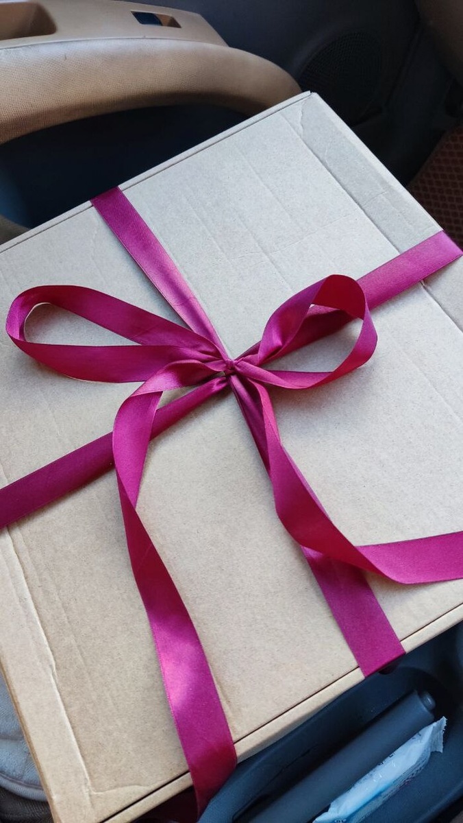 Сразу после получения сообщения о готовности подарка, один из участников торопился в офис доставки, где его ждала настоящая находка. В её глазах отразилось счастье, когда при распаковке появился целый набор для уютного времяпрепровождения.