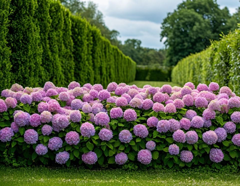 Лучшей кандидатурой для создания живой изгороди станет гортензия метельчатая. Её крупные, конусовидные соцветия и крепкие побеги прекрасно держат форму. Древовидные сорта тоже подойдут, только они требуют чуть больше внимания. При планировании нужно определиться с дизайном: высота изгороди может варьироваться от скромных 30 см (так называемый бордюр) до 2 метров (стенки). Важно оставить расстояние между саженцами — от 0,5 до 1 метра, в зависимости от того, насколько густой вы хотите видеть ваше зеленое ограждение.