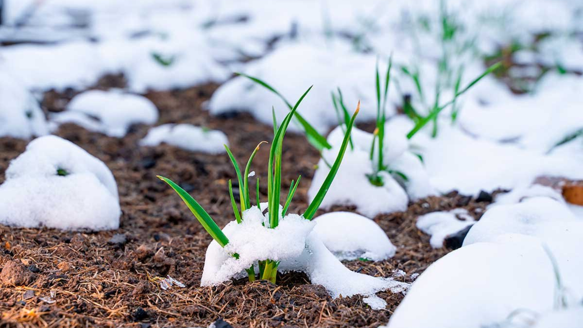 - Осторожная подкормка: Когда снег уйдёт, чеснок может выглядеть вялыми. Не спешите удобрять его азотом, лучше используйте зольный настой или слабый раствор мочевины.