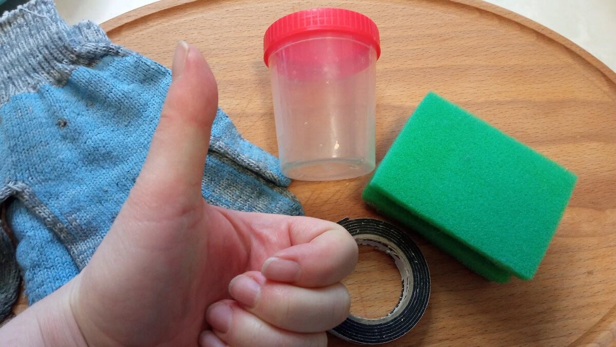 Следующим шагом в домашних «реинкарнациях» становится создание уникального устройства для мытья посуды. Идея проста: возьмите любую небольшую баночку и проделайте несколько дырочек в крышке с помощью ножа или раскаленного гвоздя. После этого поместите губку на крышку, используя двусторонний скотч или строительный клей.