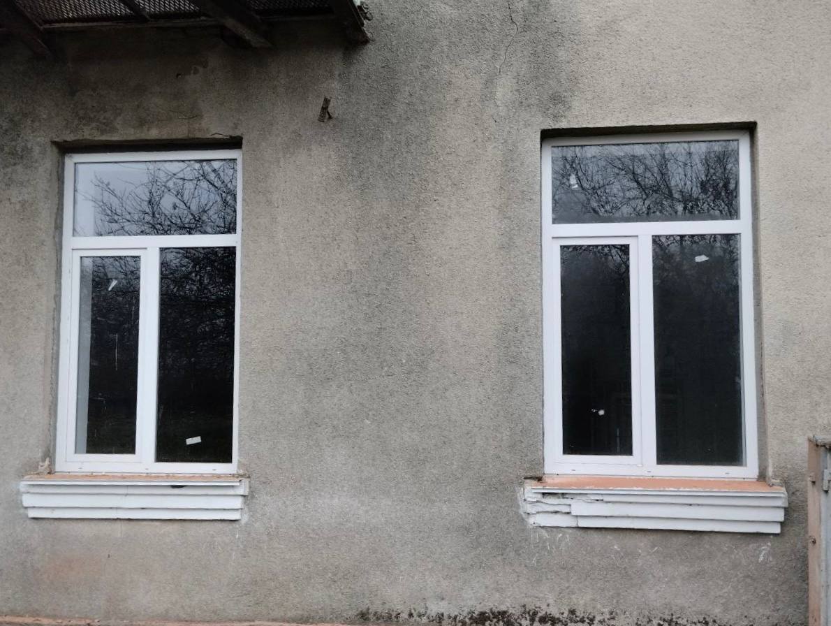 На сегодняшний день установлены новые пластиковые окна, двери, готовы откосы и отливы, ведутся подготовительные работы по устройству отмостки, защищающей фундамент.