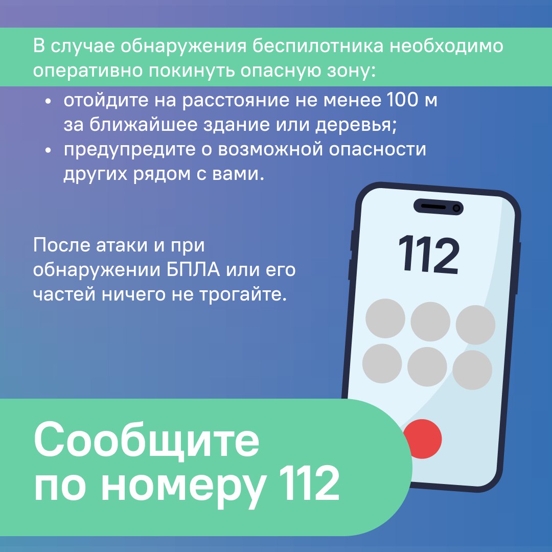 Важно: После атаки или при обнаружении упавшего БПЛА или его частей ничего не трогайте. Немедленно позвоните по номеру 112 и сообщите об этом.