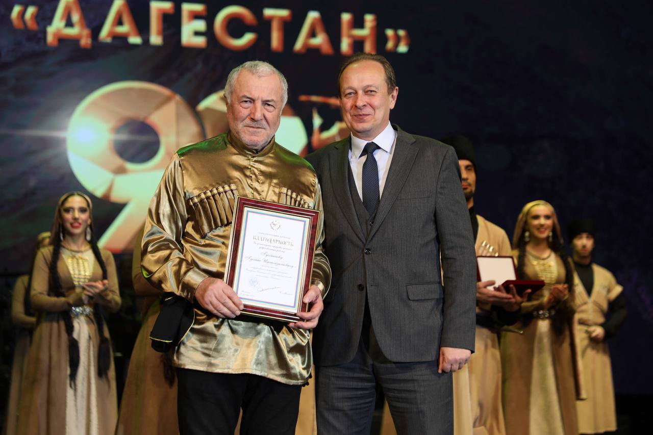 Заместитель Председателя Правительства РД Муслим Телякавов вручил государственные награды артистам художественного коллектива Государственного ансамбля песни и танца «Дагестан» в связи с его 90-летним юбилеем.
