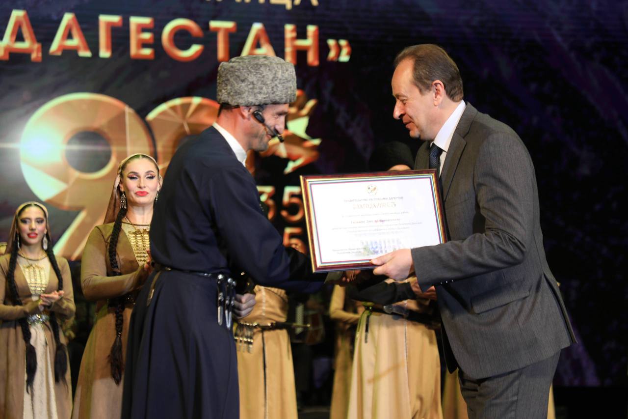 Почетную Грамоту Республики Дагестан из рук вице-премьера также получил артист балета ансамбля Абдулзагир Алескеров.
