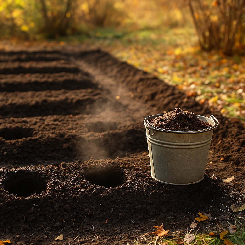 Весной многие садоводы сталкиваются с проблемами: почва еще не прогрелась, водные лужицы мешают работе, а планы по посадке накапливаются. Осенняя подготовка лунок избавляет от этой спешки. Выкапывая ямки в ноябре, когда почва еще не промерзла, но уже достаточно плотная, садоводы могут существенно облегчить себе весенние хлопоты. Весной достаточно лишь вставить ростки в уже подготовленные лунки и присыпать их теплой землей, что делает посадку быстрой и удобной.