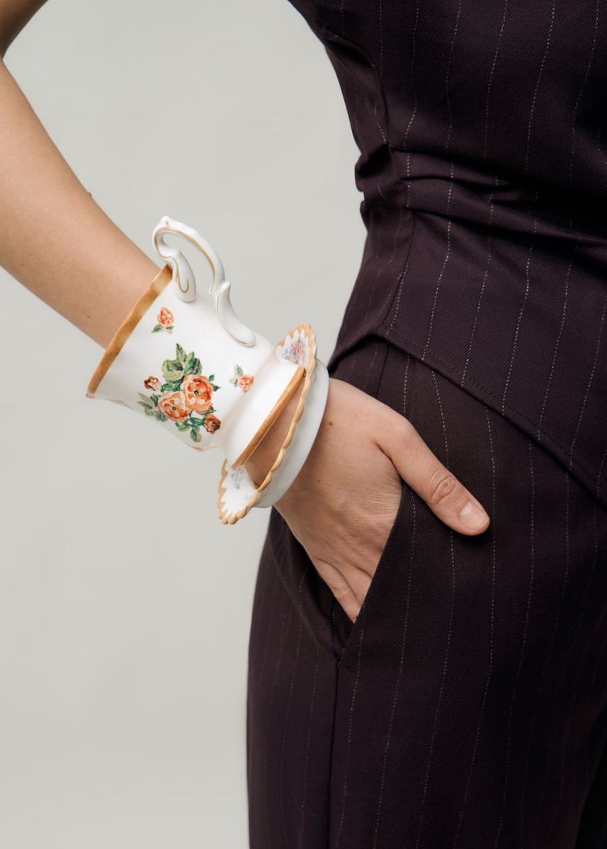 Новый браслет-манжета в форме чашки с изысканными розами стал настоящим хитом среди любителей красивых вещей. Его цена составляет около 50 000 рублей, что можно считать весьма достойным для предмета искусства, выполненного с такой тщательностью. В дополнение к нему представлен браслет-ободок, который напоминает блюдце и оценивается в 40 000 рублей. Эти аксессуары идеально подойдут для тех, кто хочет добавить нотку оригинальности в свой образ, особенно на утренние или вечерние встречи с друзьями.