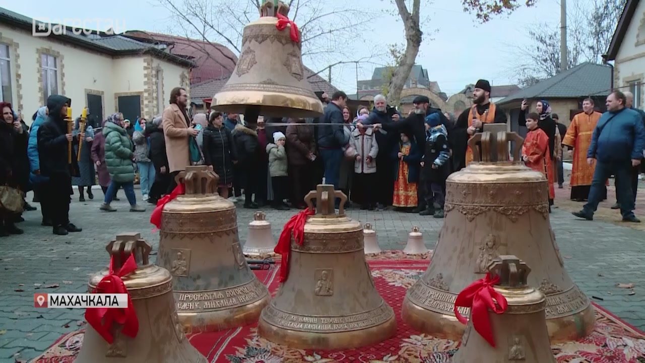 Их в дар храму передали благодетели взамен тем, которые пострадали при нападении террористов летом 2024 года. Наши корреспонденты побывали на церемонии освящения и установки колоколов.