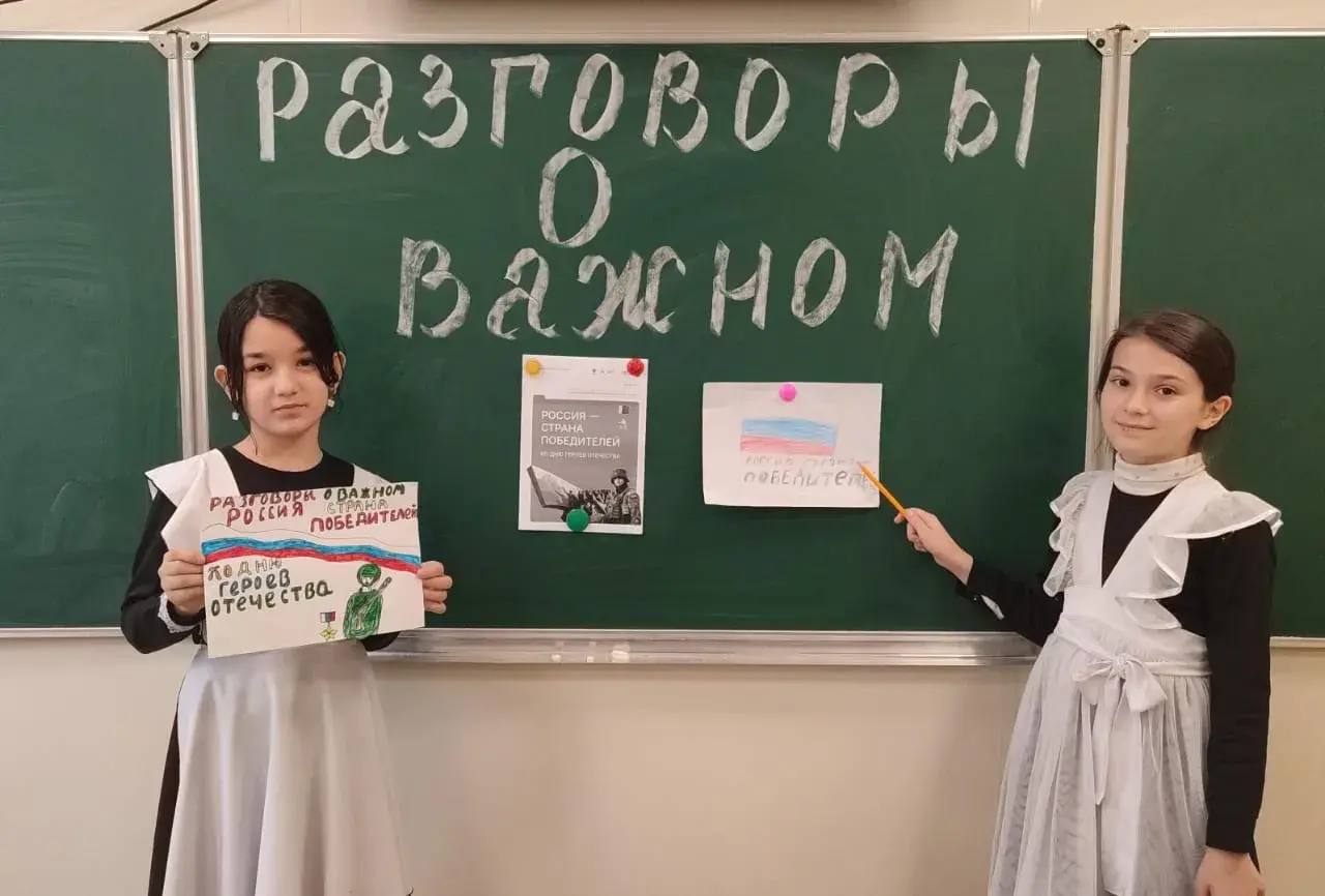 8 декабря в рамках внеурочной программы «Разговоры о важном» для школьников Хасавюрта прошли уроки на тему «Россия — страна победителей», приуроченные к Дню Героев Отечества.
