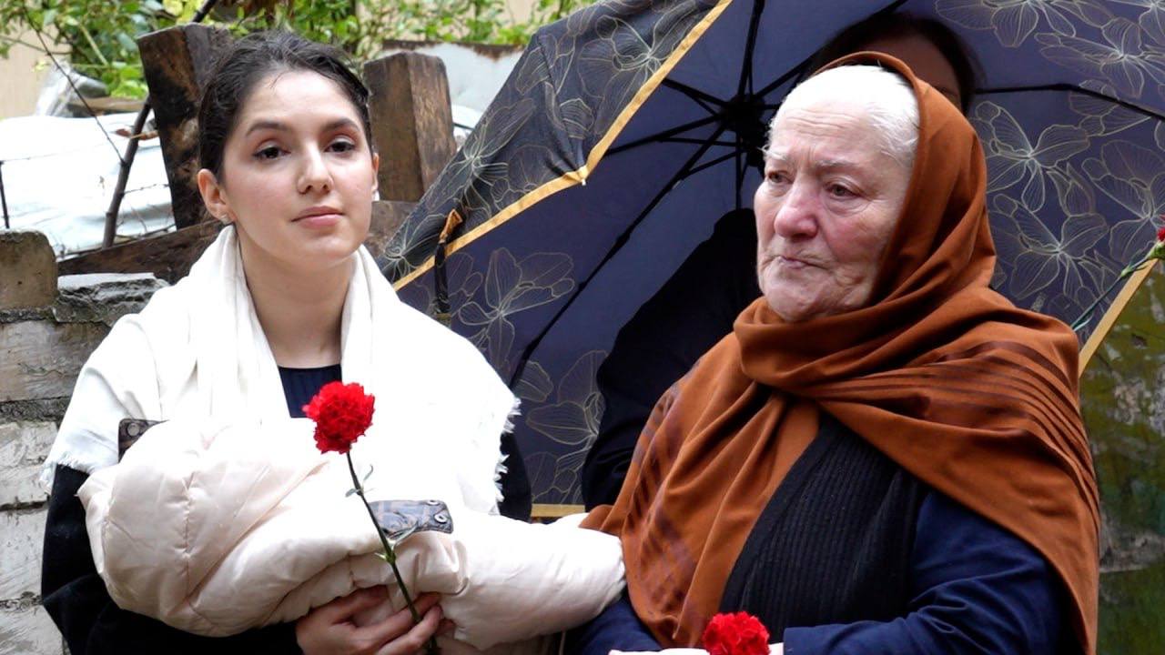 После возложения цветов участники акции почтили память минутой молчания, а затем возложили цветы к подножию плиты.