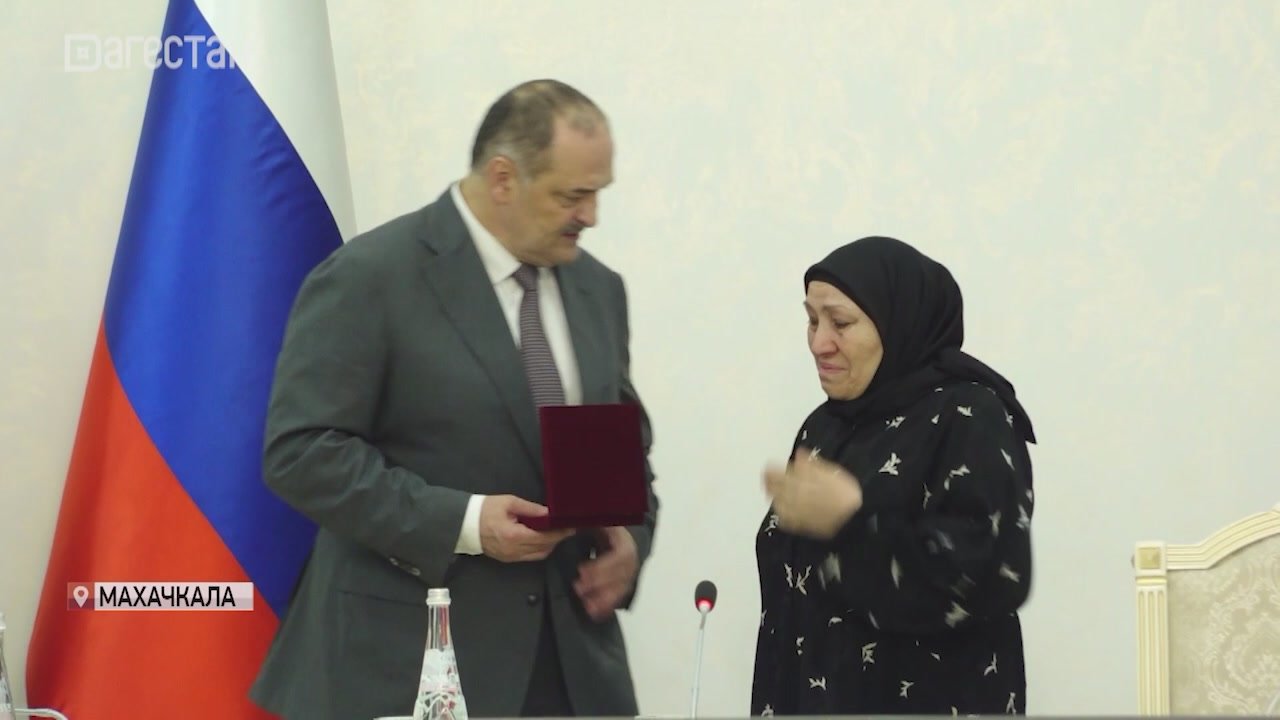Руководитель региона вручил различные награды отличившимся дагестанцам. Мероприятие приурочили ко Дню Героев Отечества. Так, Указом президента России Орден мужества пЕредали Рахиму Нурмуханову. Ещё 8 жителей республики удостоены медалей «За проявленное мужество». Один из них – Нариман Исаев – посмертно. Данный знак получила мать погибшего бойца Абидат Абдурахмановна. Ключи от нового авто от фонда «Защитники Отечества» преподнесли военнослужащему Артуру Калаеву, который получил ранее тяжелое ранение на передовой. Чествовали в этот день также участников 25-ых, летних, Сурдлимпийских игр в Токио и их тренеров.