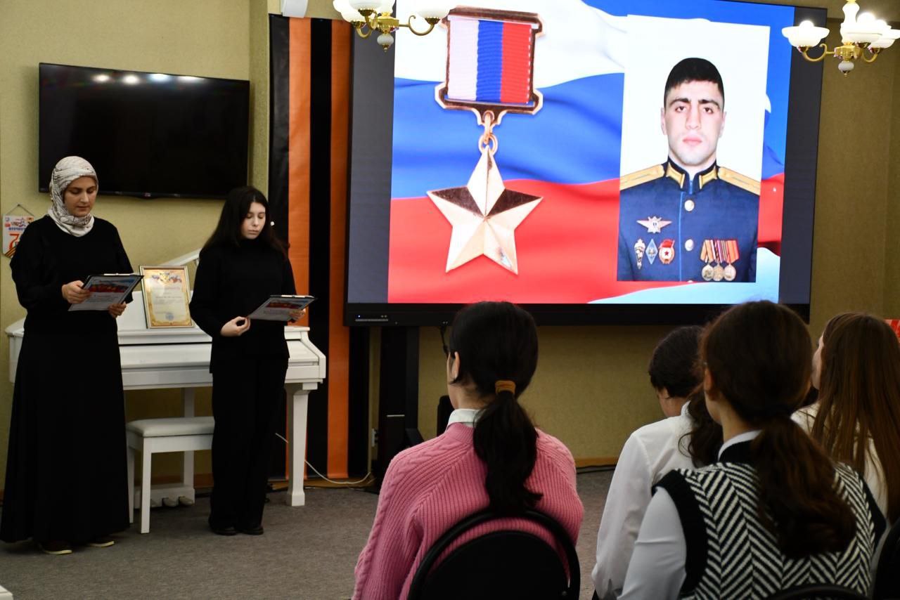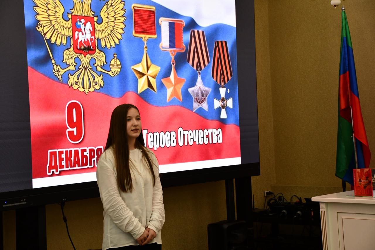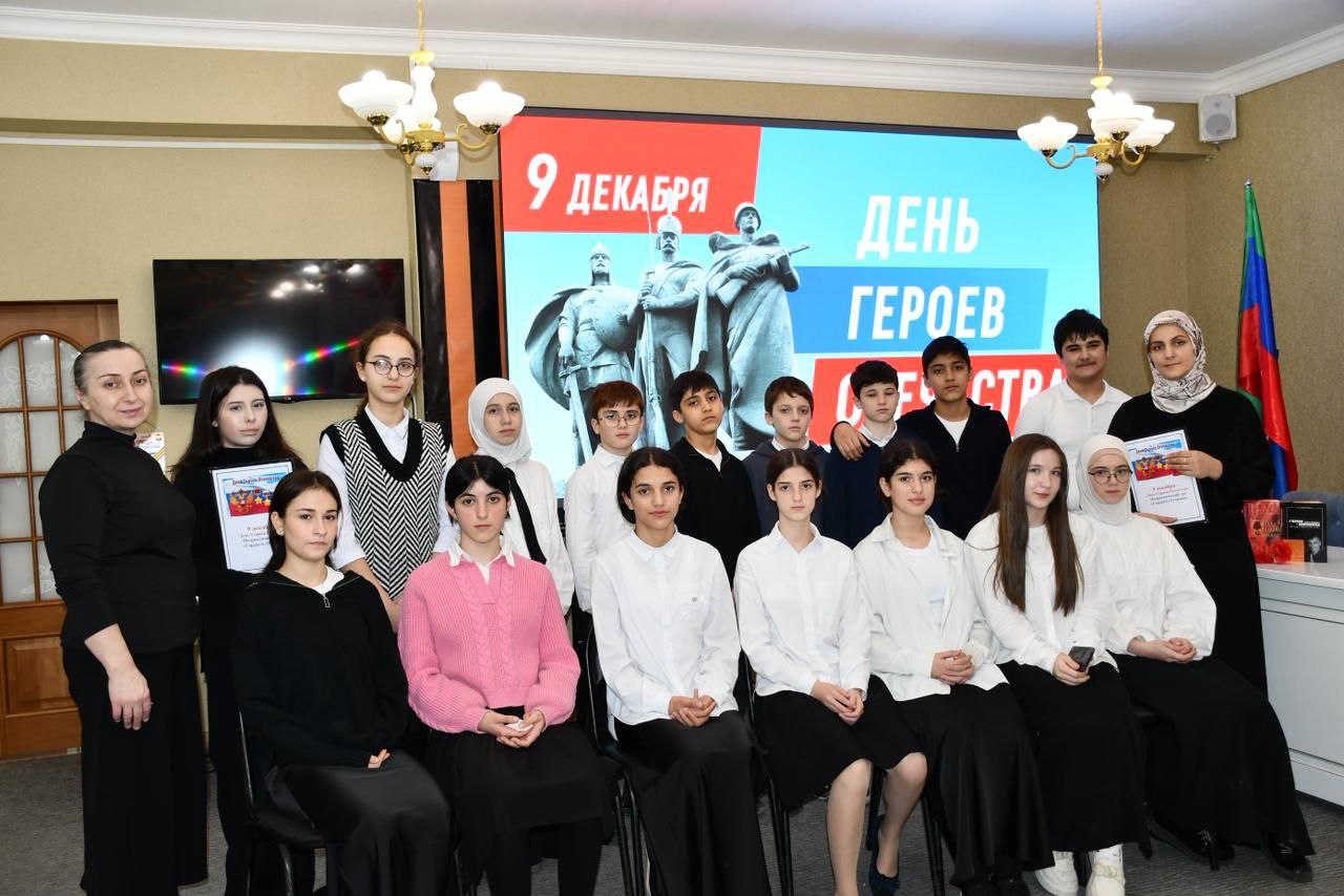 Заведующая библиотекой Аминат Хурбекова подробно рассказала о происхождении и значении праздника, подчеркнув, что День Героев Отечества отмечается 9 декабря с 8 февраля 2007 года согласно Указу Президента Российской Федерации.