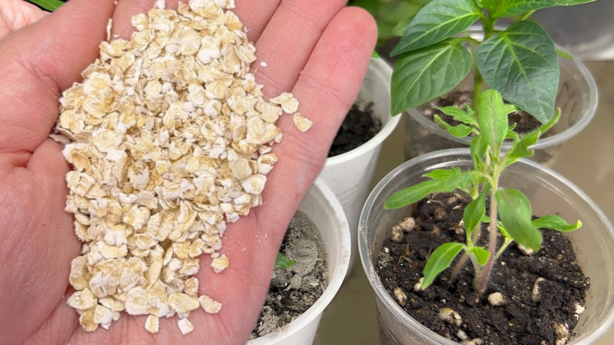 - Для рассады: При подготовке грунта добавьте щепотку овсянки и тщательно перемешайте с первым слоем земли.