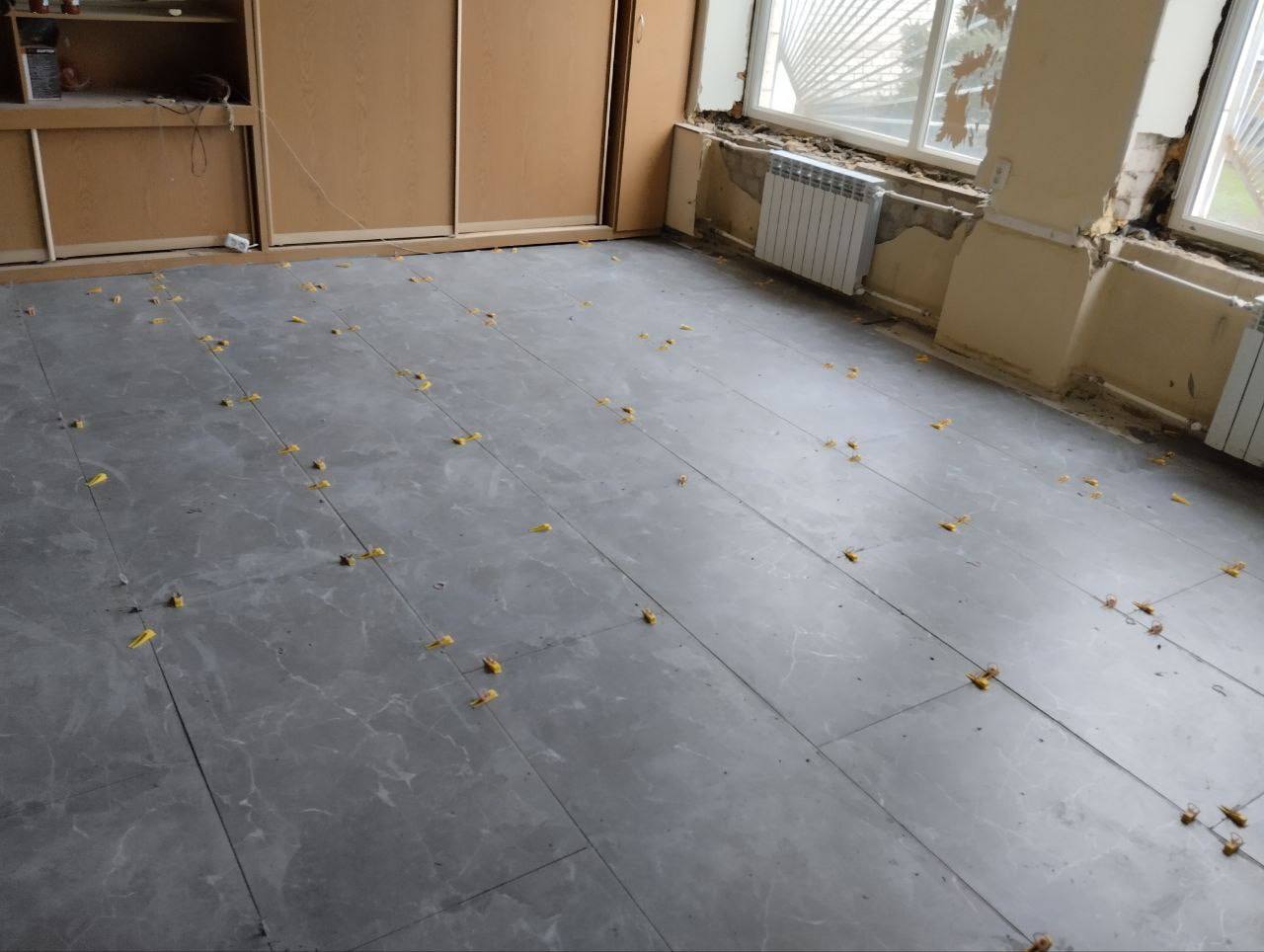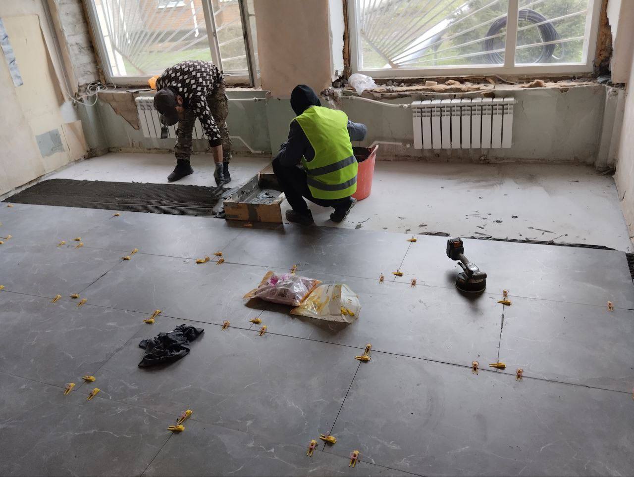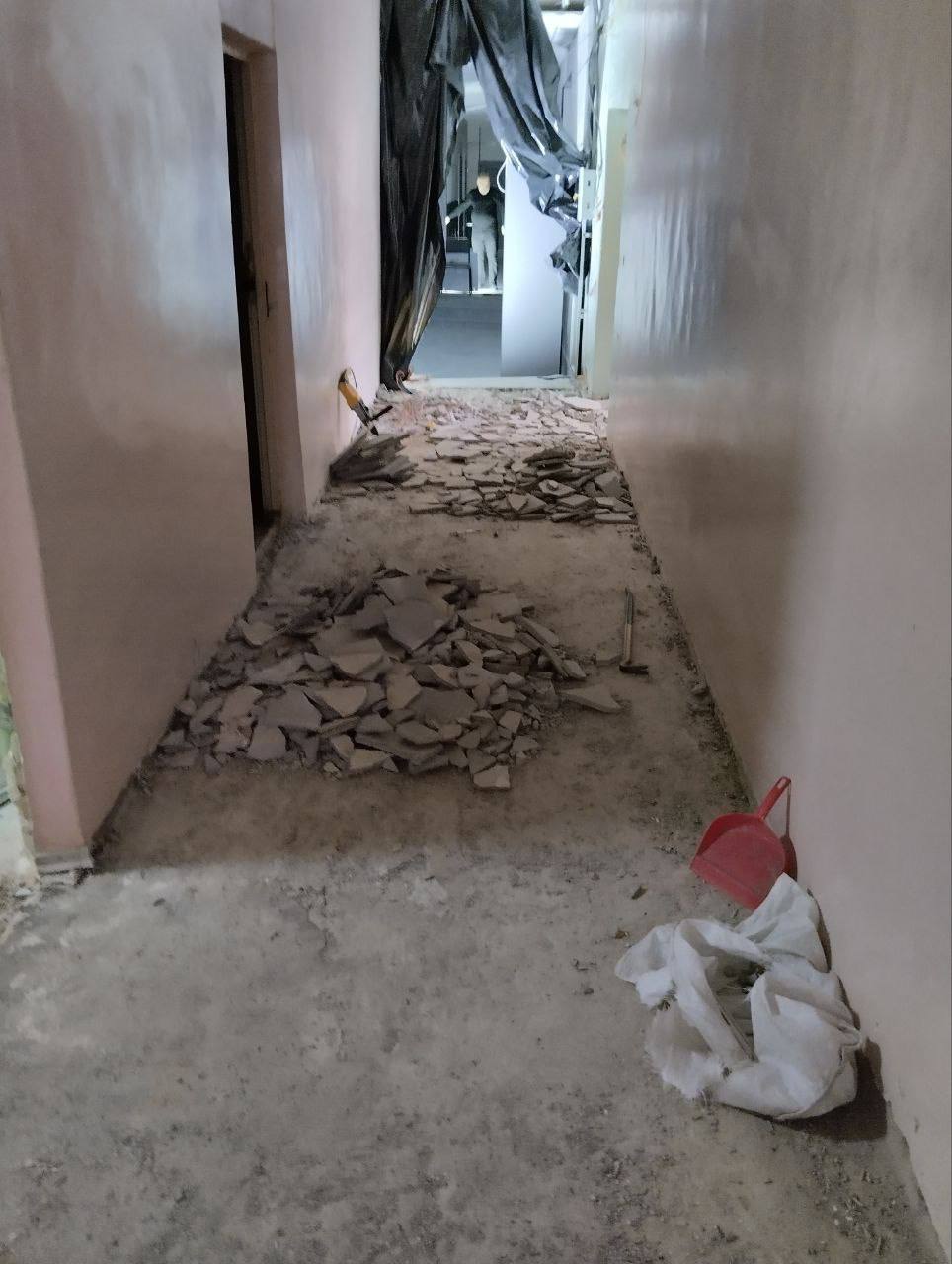 Теперь очередь дошла до левого крыла, где наши коллеги начали демонтаж конструкций и устройство полов из керамогранита.