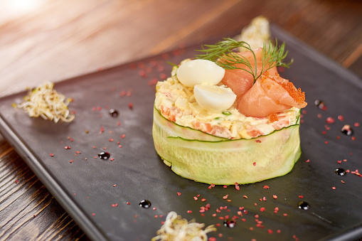 Салат с красной рыбой, яйцом и болгарским перцем