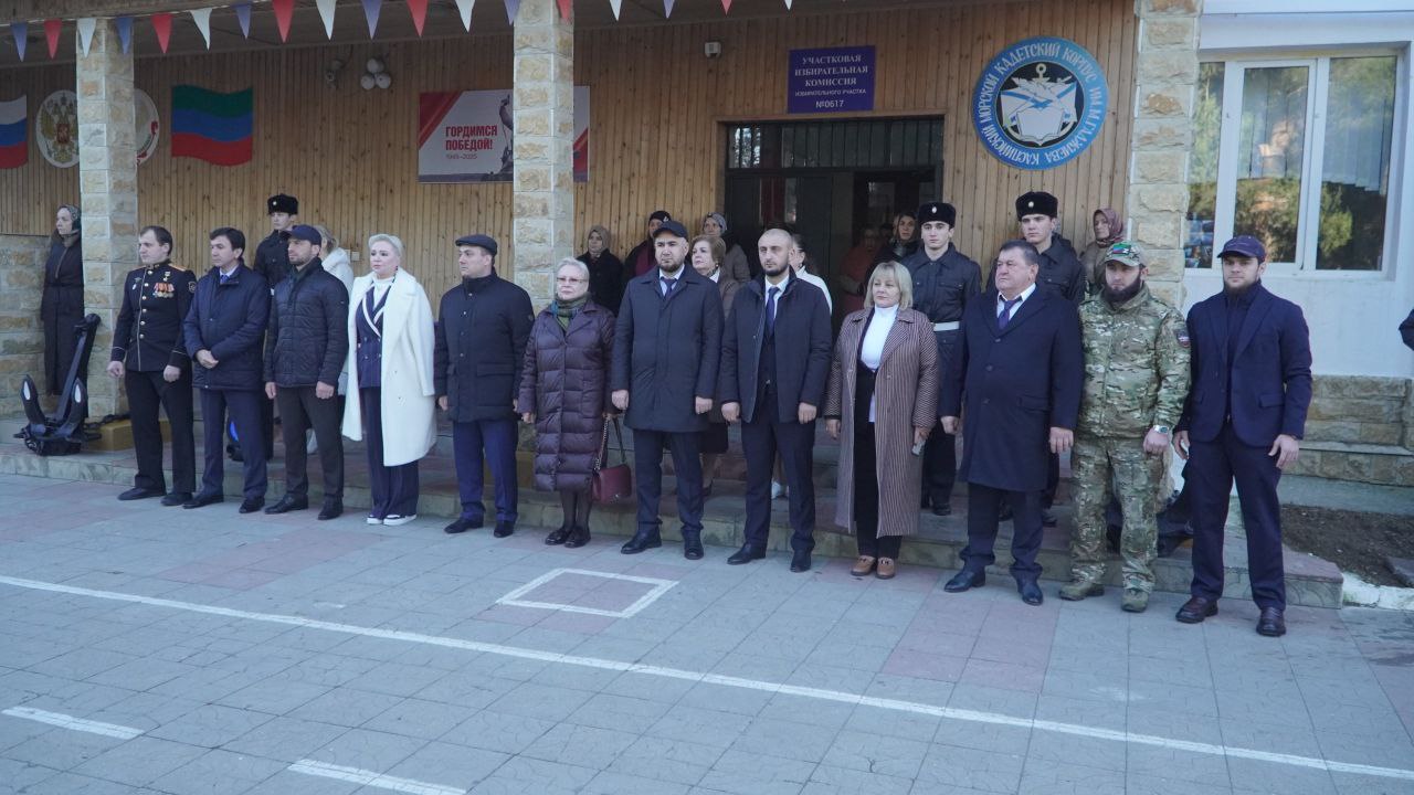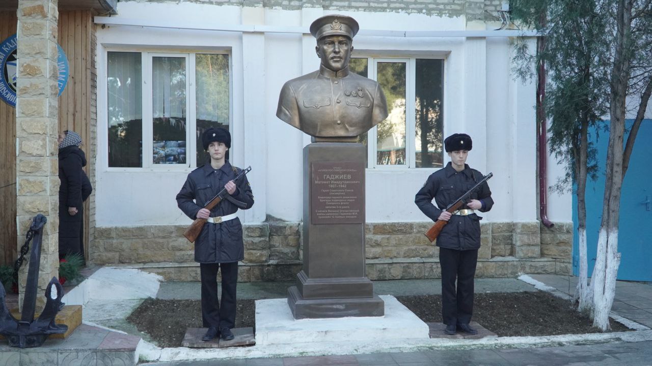 Кадеты встречали гостей на плацу, где состоялась первая часть мероприятия. В ходе церемонии гости возложили цветы к бюсту Героя Советского Союза М.И. Гаджиева и к мемориальной табличке выпускника КМШИ, погибшего на СВО, Рамазанова Рагима Такидиновича.