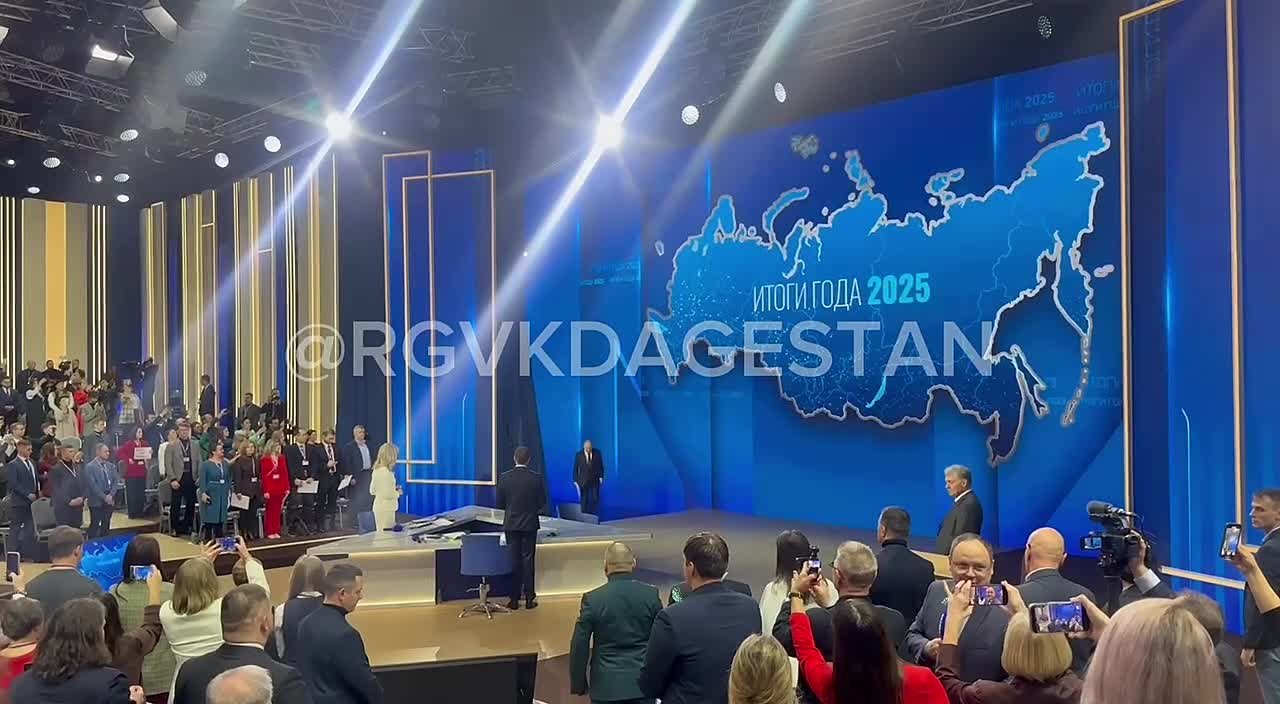 Президент подведёт итоги года и ответит на вопросы журналистов и граждан. Уже поступило больше 2,5 миллионов вопросов, сообщили ведущие. Задать вопрос Президенту можно через официальный чат-бот в МАХ
