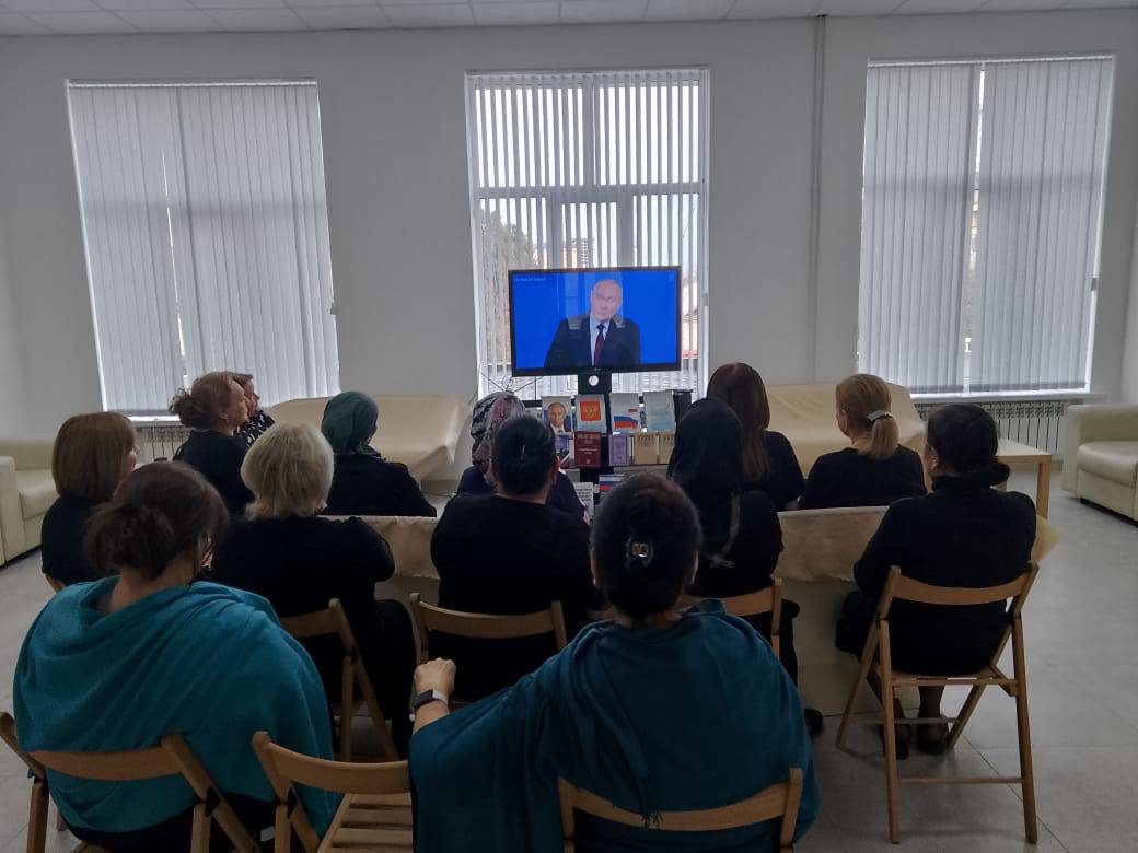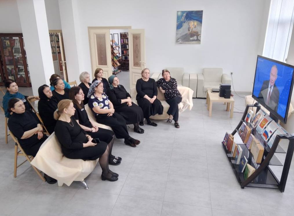 Коллектив библиотеки Хасавюрта присоединился к прямой трансляции Президента Российской Федерации Владимира Путина, которая проходит в эти минуты.