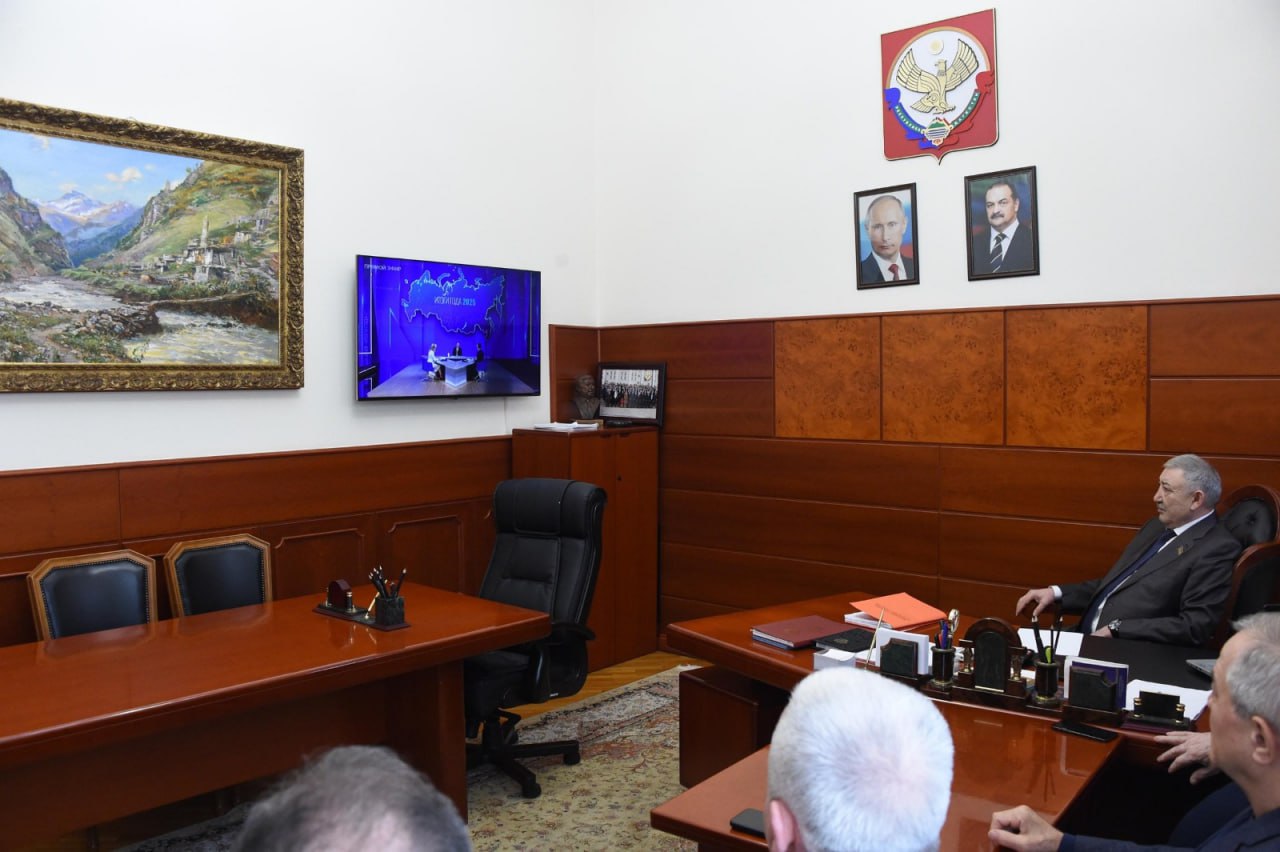 Вице-спикер парламента Сайгидахмед Ахмедов и депутаты Народного Собрания следят за трансляцией.