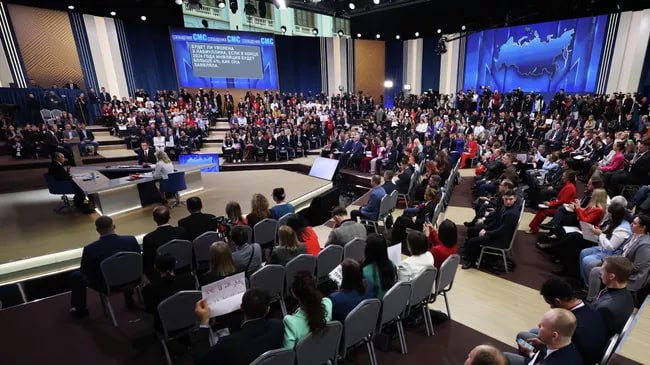 Депутаты внимательно следят за выступлением Президента РФ, обсуждая ключевые темы и инициативы, которые поднимаются в ходе мероприятия.