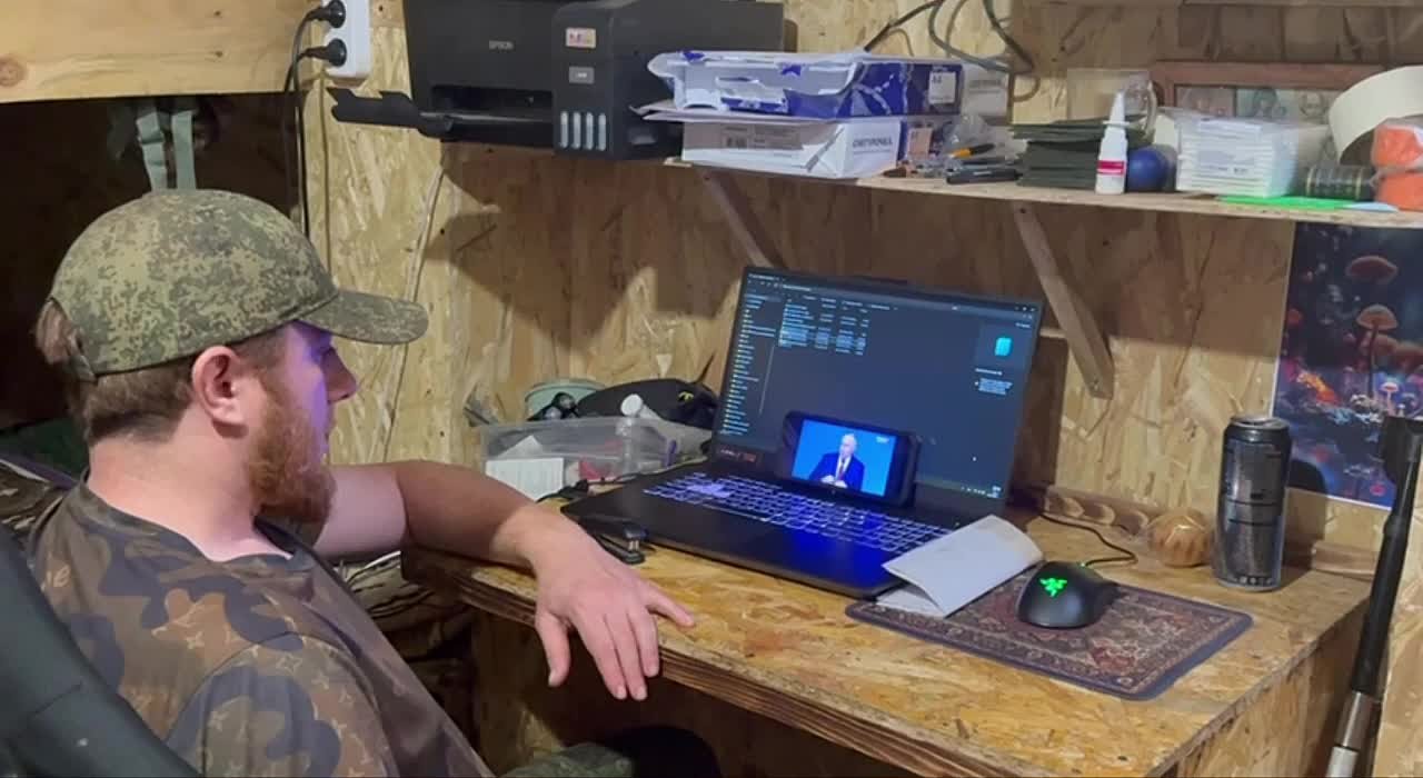 Командир штурмового взвода из Дагестана Магомед Шамилов в зоне СВО смотрит Прямую линию президента Владимира Путина. Награждённый медалями за храбрость офицер заявил, что военнослужащие ощущают поддержку страны и уверены в победе.