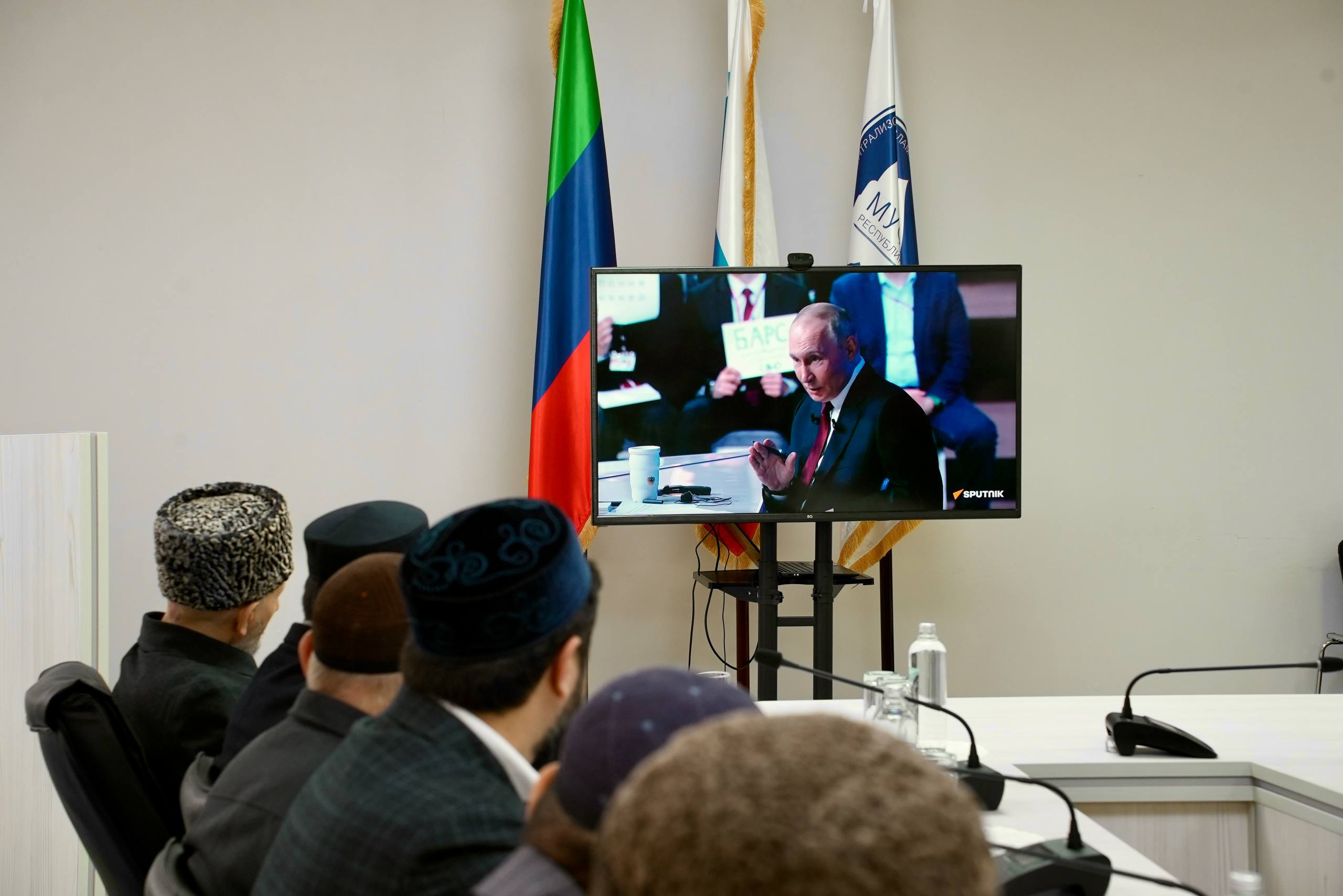 Коллектив Муфтията Республики Дагестан во главе с Муфтием РД, шейхом Ахмадом Афанди, в настоящее время смотрит прямую трансляцию с Президентом Российской Федерации Владимиром Путиным.