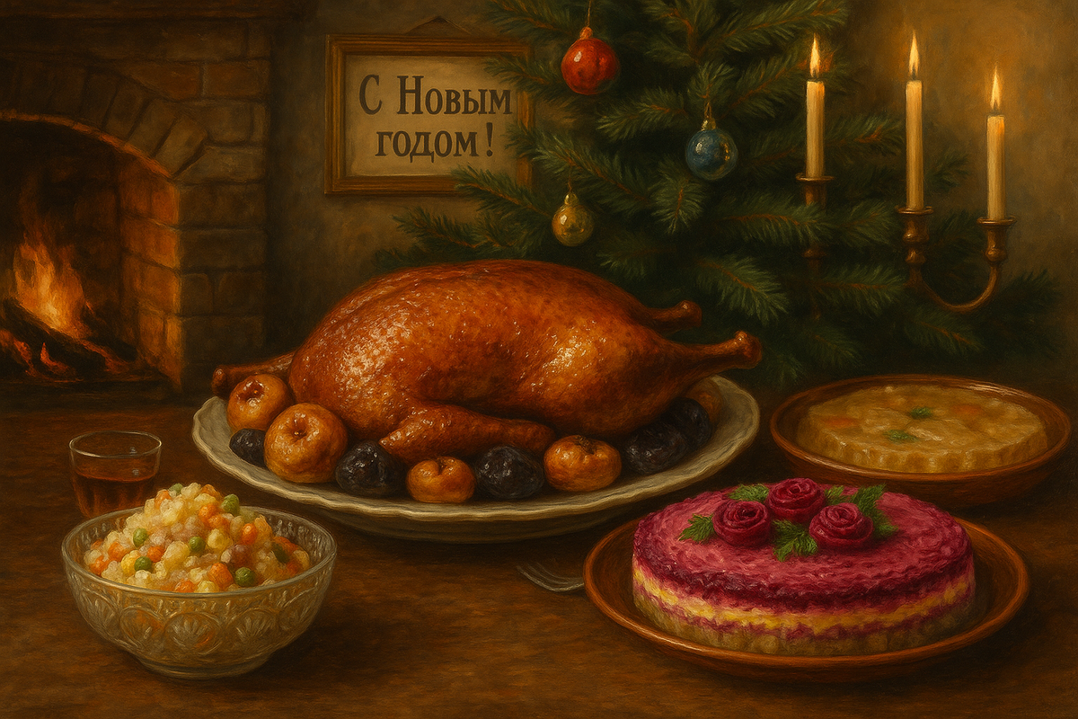 Для русских до революции Рождество считалось главным праздником, а Новый год служил веселым продолжением. На столе изобилие: поросёнок с гречневой кашей, фаршированный гусь, пироги и кулебяка с многоуровневыми начинками — все эти блюда привлекали внимание гостей. Запах сбитня с мёдом окутывал дом, создавая атмосферу тепла и уюта. Дети с нетерпением ждали сладости в виде петушков, а под бой курантов загадывали желания, веря в их исполнение. Такой Новый год был наполнен любовью и надеждой на благополучие, сообщает Дзен-канал "Империя вкусов".