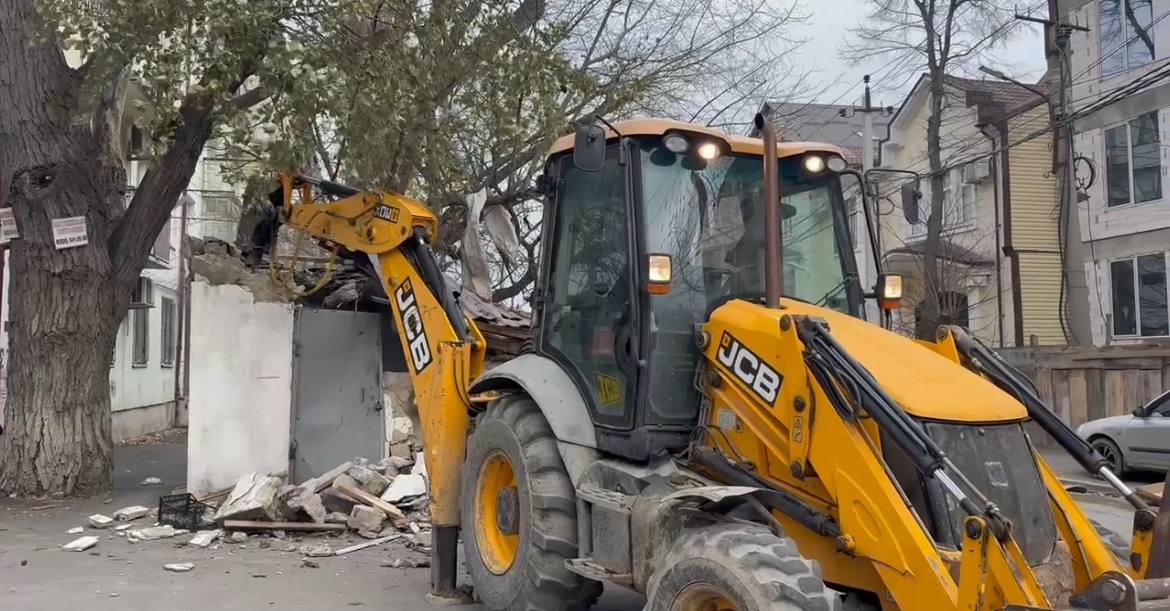 В Махачкале на Гайдара Гаджиева снесли очередной незаконный объект, который захватывал тротуар.
