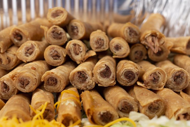 Рулетики из лаваша с корейской морковью, ветчиной и помидорами