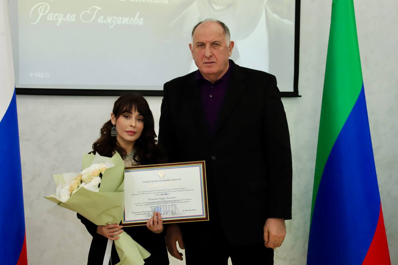 Напомним, Оксана Халилова в 2023 году стала призером правительственной акции «Читаем Расула»,которую запустил Председатель Правительства Дагестана Абдулмуслим Абдулмуслимов. Конкурсные работы присылали с разных уголков земли, всего поступило более 1200 видеороликов с прочтением стихов Расула Гамзатова. Победители конкурса получили денежные премии, подарочные наборы, книги Расула Гамзатова и Благодарности Председателя Правительства РД.
