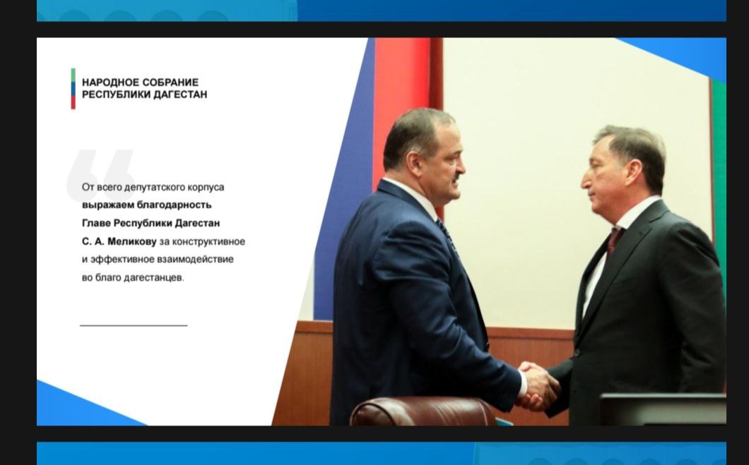 От всего депутатского корпуса Заур Аскендеров выразил благодарность Главе Республики Дагестан Сергею Алимовичу Меликову "за конструктивное и эффективное взаимодействия во благо дагестанцев".