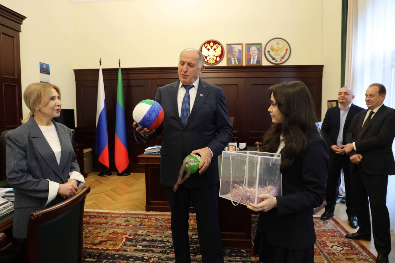 Ребята поблагодарили Председателя Правительства РД за интересный диалог и преподнесли ему подарки, изготовленные своими руками — новогодние шары на елку. Так, один праздничный шар демонстрирует единство Дагестана и России, второй — изображает премьера с горными овцами. Еще одно украшение на ёлку в виде шапки своими руками сшил один из мальчишек.