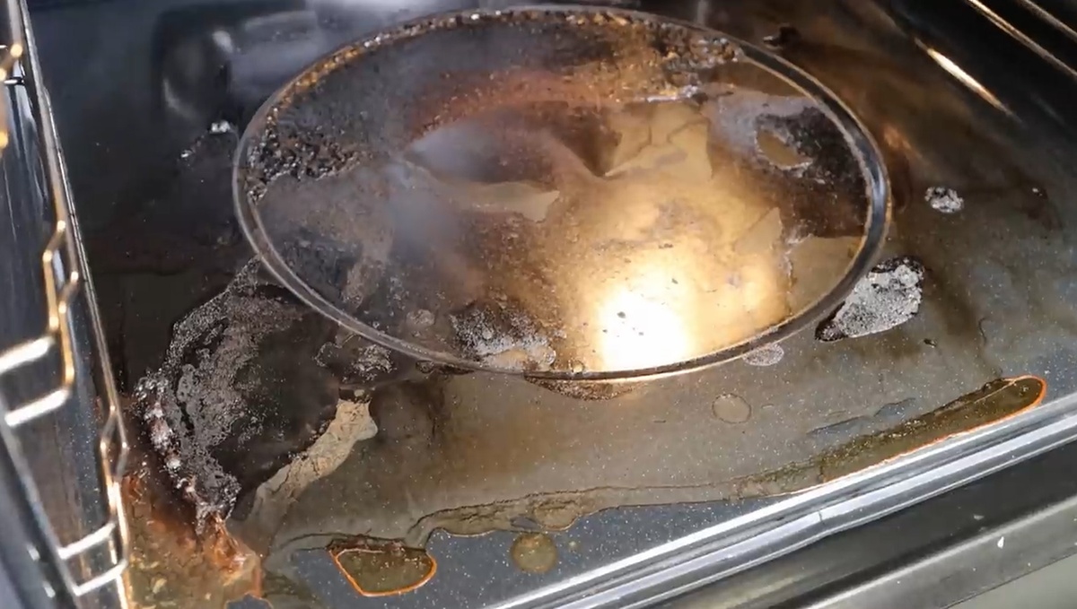 После того как смесь готова, ставьте противень в духовку и добавьте немного воды на дно, чтобы предотвратить прилипание нагара. Разогрейте духовку до 200–250 градусов и оставьте «вариться» на 15–30 минут — чем сильнее загрязнение, тем больше времени потребуется. В процессе нагревания пары растворят загрязнения, превращая их в более мягкое состояние.