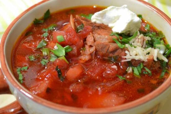 Процесс начинается с бульона. В большую кастрюлю наливается вода, добавляются свиные ребра и варятся до мягкости, не вытаскивая мясо из костей. Пока бульон на плите, свеклу и морковь натирают на терке. Картофель нарезают кубиками, а лук и сладкий перец - мелкими кусочками. Помидоры очищают от кожуры и тщательно нарезают, сохраняя сок. Если же помидоры слишком сладкие, можно сбалансировать их вкус с помощью кислоты.