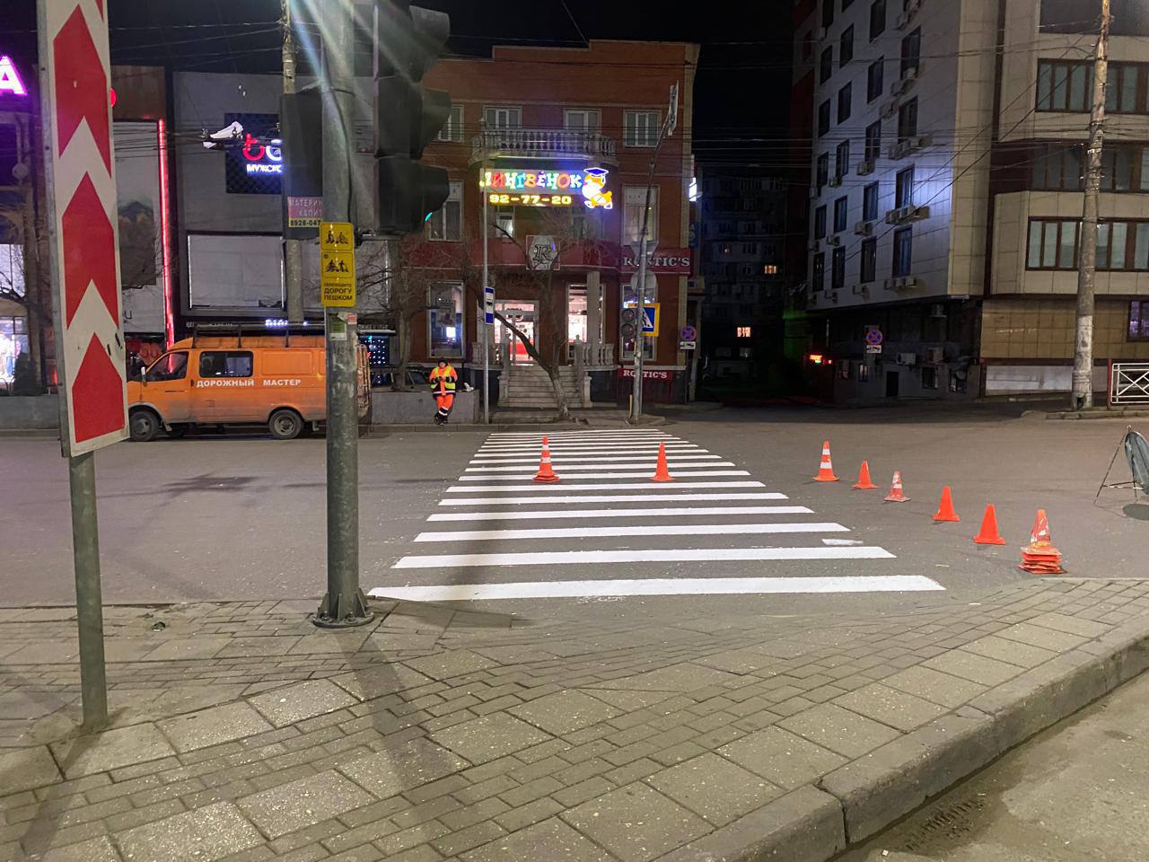 Прошлой ночью в Махачкале на троллейбусном кольце обновили дорожную разметку.