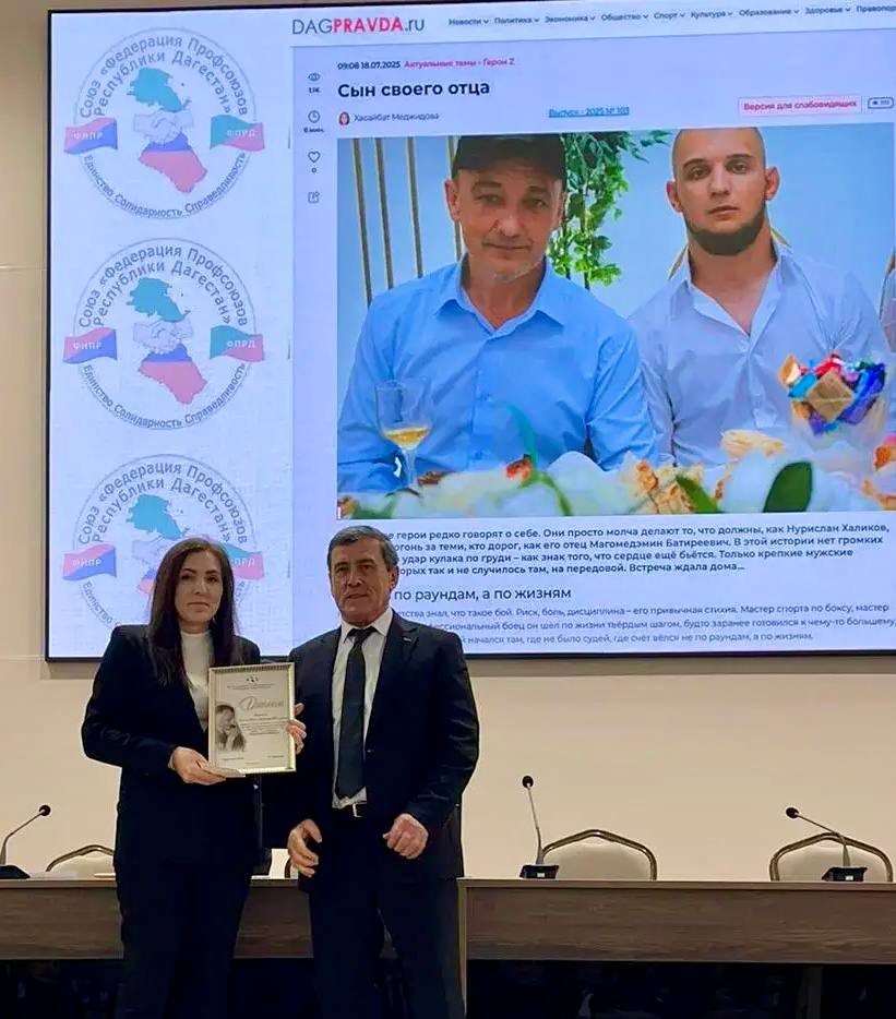 Корреспонденты газеты «Дагестанская правда» Хасайбат Меджидова и Мадина Ахмедова удостоены звания лауреатов конкурса региональной журналистики памяти выдающегося дагестанского журналиста Алика (Аликбера) Абдулгамидова.