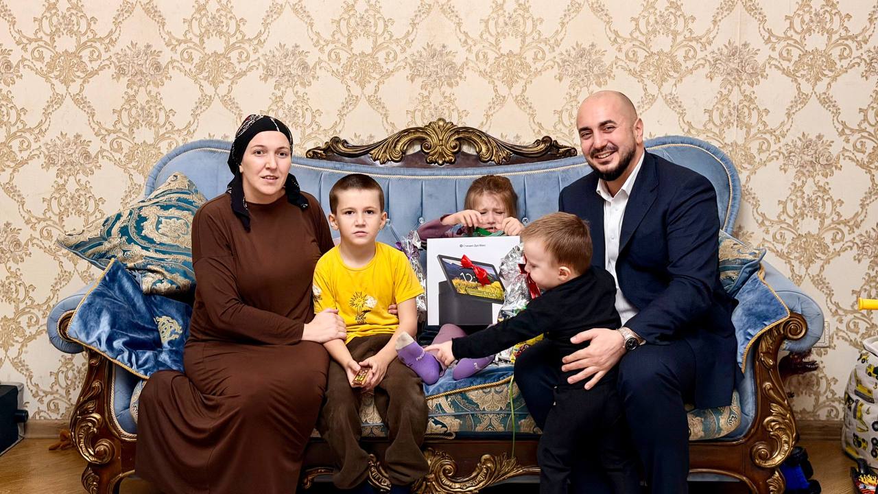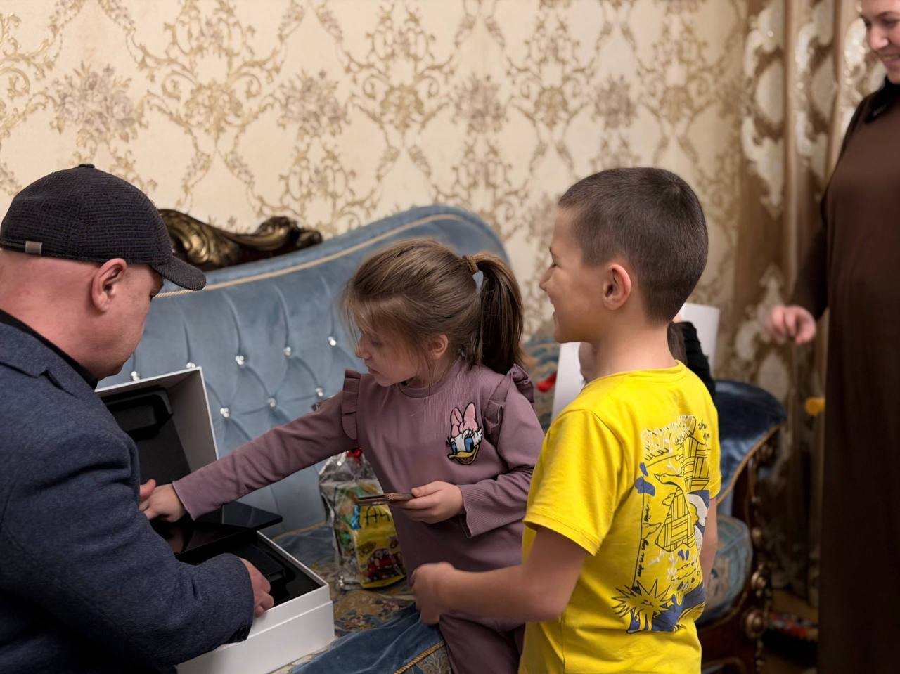 Руководитель ведомства поздравил семью с Наступающим Новым Годом, а Дианка сразу же решила протестировать и оценить подарок. Кроме основного подарка, девочка и другие дети семьи получили традиционные и любимые всеми сладкие подарки.