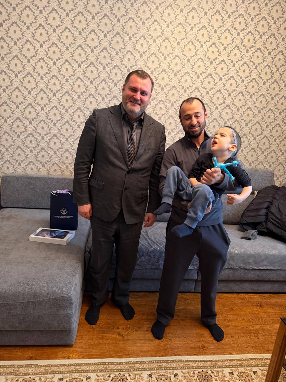 Ярослав Глазов поздравил с наступающим Новым годом маленького Халида из пос. Ленинкент. Хорошее настроение, приятный подарок и планшет помогут в новом году ему развиваться и учиться. Также министр исполнит желание 9-летней Фирузы из города Дербента, пожелавшей получить к празднику набор гитариста.