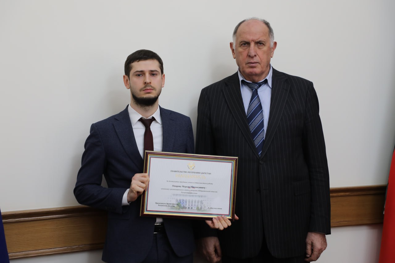 Благодарность Правительства Республики Дагестана объявлена Мураду Омарову, начальнику организационного отдела Аппарата Избирательной комиссии Республики Дагестан.