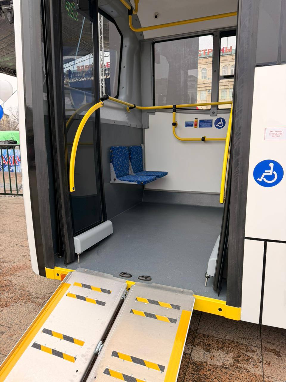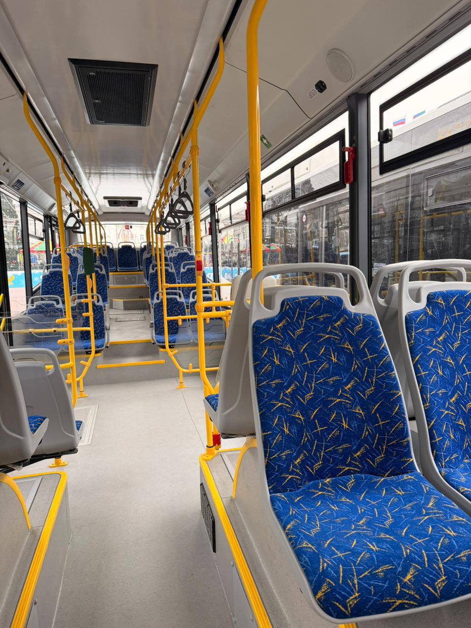 В город поступили автобусы большого, среднего и малого класса, рассчитанные на перевозку от 50 до 70 пассажиров. Вся техника соответствует современным требованиям комфорта и безопасности: автобусы полностью адаптированы для маломобильных граждан, оснащены кондиционерами, системами видеонаблюдения и навигации, а также терминалами безналичной оплаты проезда. Низкопольная конструкция обеспечивает быструю и удобную посадку и высадку пассажиров.