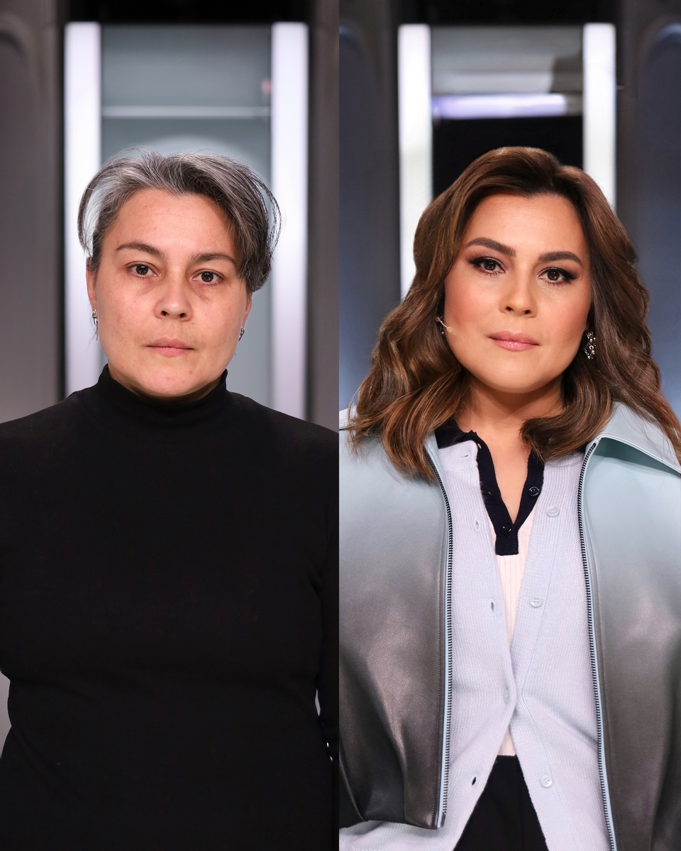 - Освежить стрижку, перейти на мягкие локоны и выбрать более естественный цвет волос, например, каштановый.