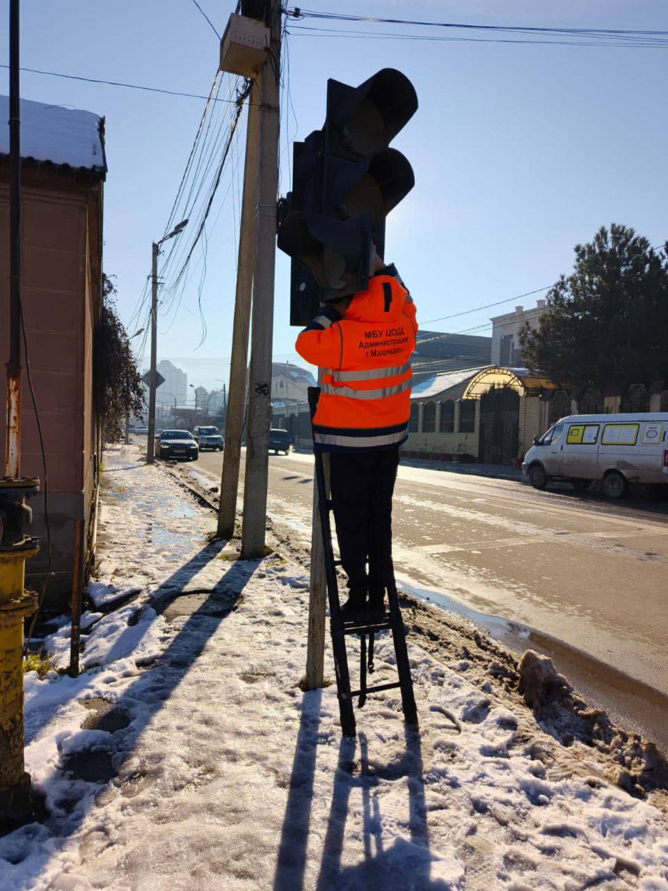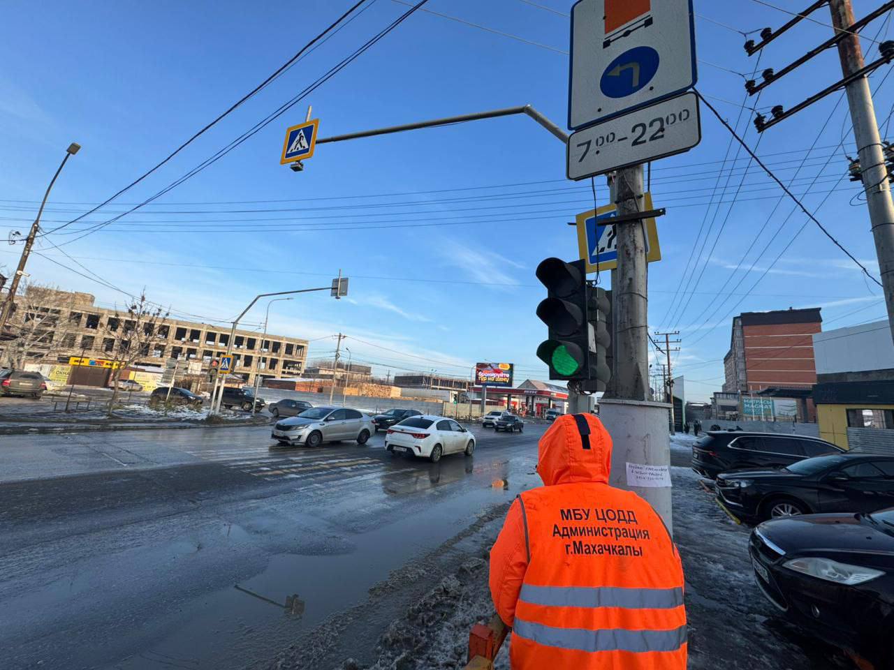 Сотрудниками МБУ «ЦОДД» г. Махачкалы проводятся работы по ремонту, восстановлению и установке дорожных знаков и светофорных объектов на улично-дорожной сети города.