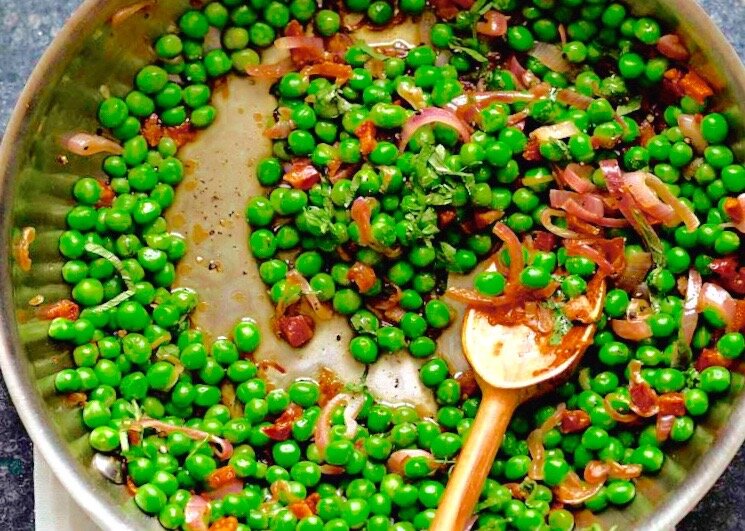 Этот гарнир идеально дополнит любое мясное блюдо. Вся прелесть заключается в простоте: для его приготовления понадобятся всего 400 г замороженного зеленого горошка, 150 г репчатого лука, 150 г моркови и несколько зубчиков чеснока. Овощи, обжаренные на сливочном масле, восхитительно подойдут к жареному или запеченному мясу.