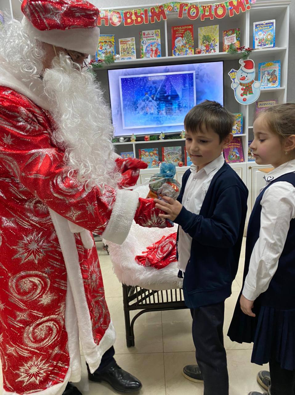 Главным сюрпризом стал визит самого Деда Мороза, который провёл для школьников веселые конкурсы. Ребята соревновались в меткости, стараясь забросить «снежки» в коробку, на скорость чистили и ели мандарины, а также за 5 минут вспоминали и записывали слова, связанные с зимой.