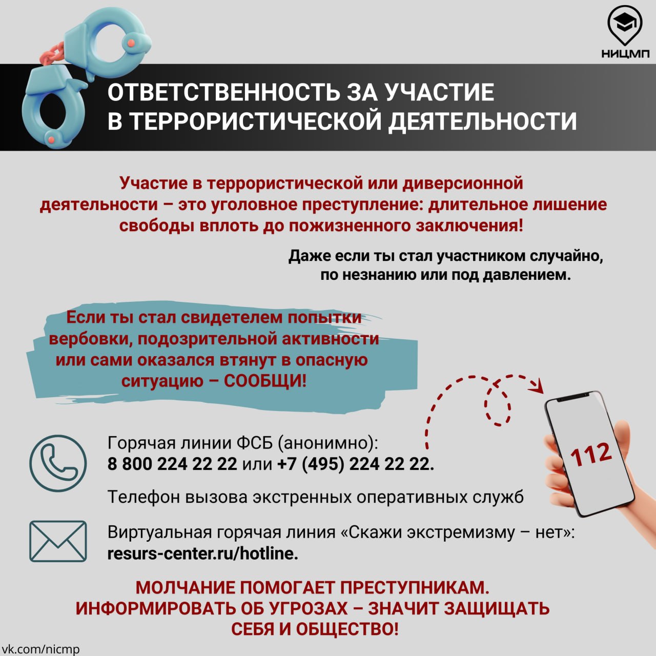 Участие в террористической или диверсионной деятельности — это уголовное преступление!