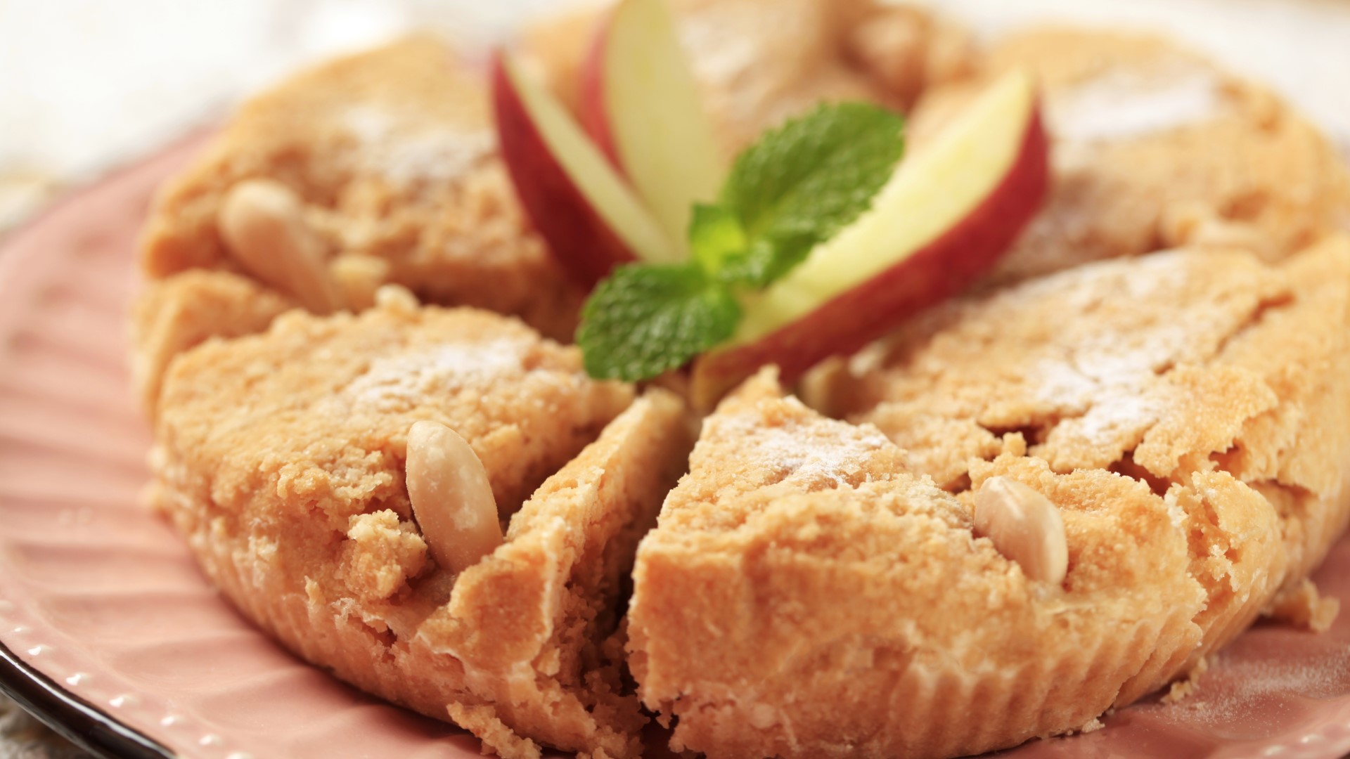 Перед выпечкой яблочные дольки замачивают на 15-20 минут в холодной подсоленной воды, чтобы они не потемнели в процесс приготовления.