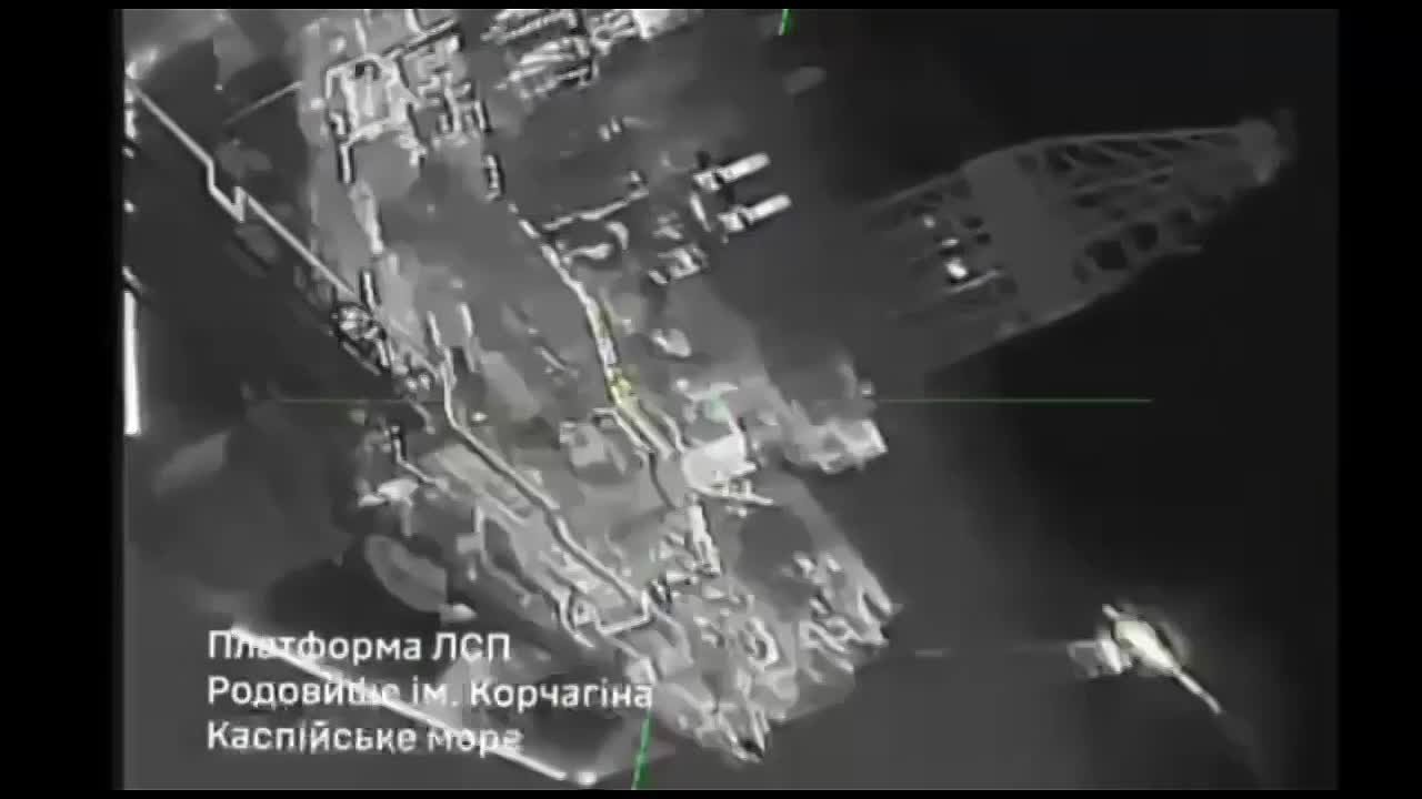 Каспийское мореГенштаб противника заявляет, что нанесены удары по буровым установкам "Лукойла" (им. В. Филановского, им. Юрия Корчагина и им. Валерия Грейфера).Как видно на записи, дрон управляется онлайн, явно по спутниковому каналу связи, как мы...