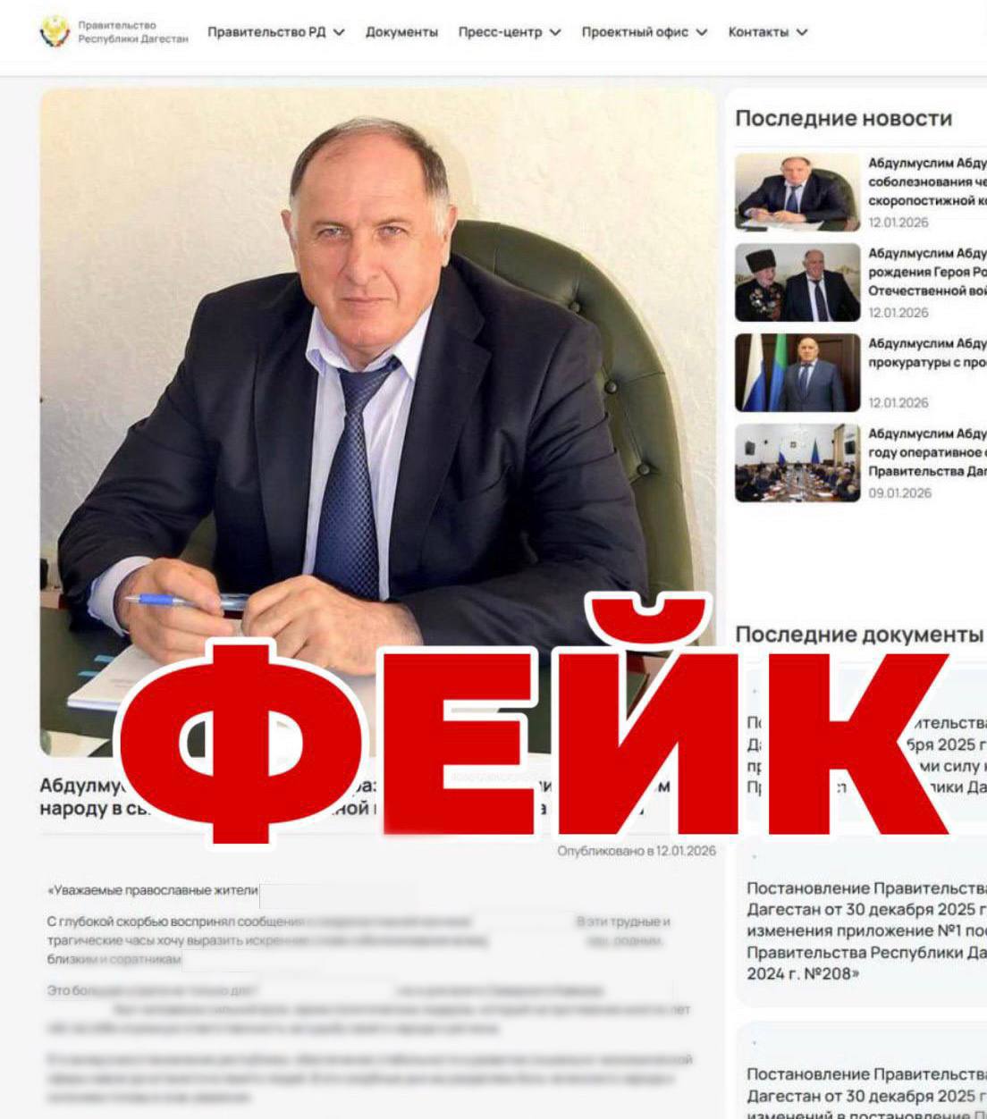 В адрес администраторов телеграм-каналов поступил очередной фальшивый скриншот, имитирующий публикацию на официальном сайте правительства Республики Дагестан.