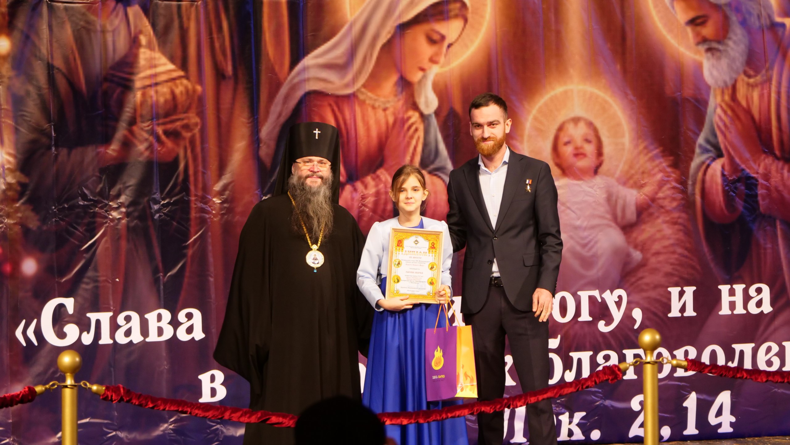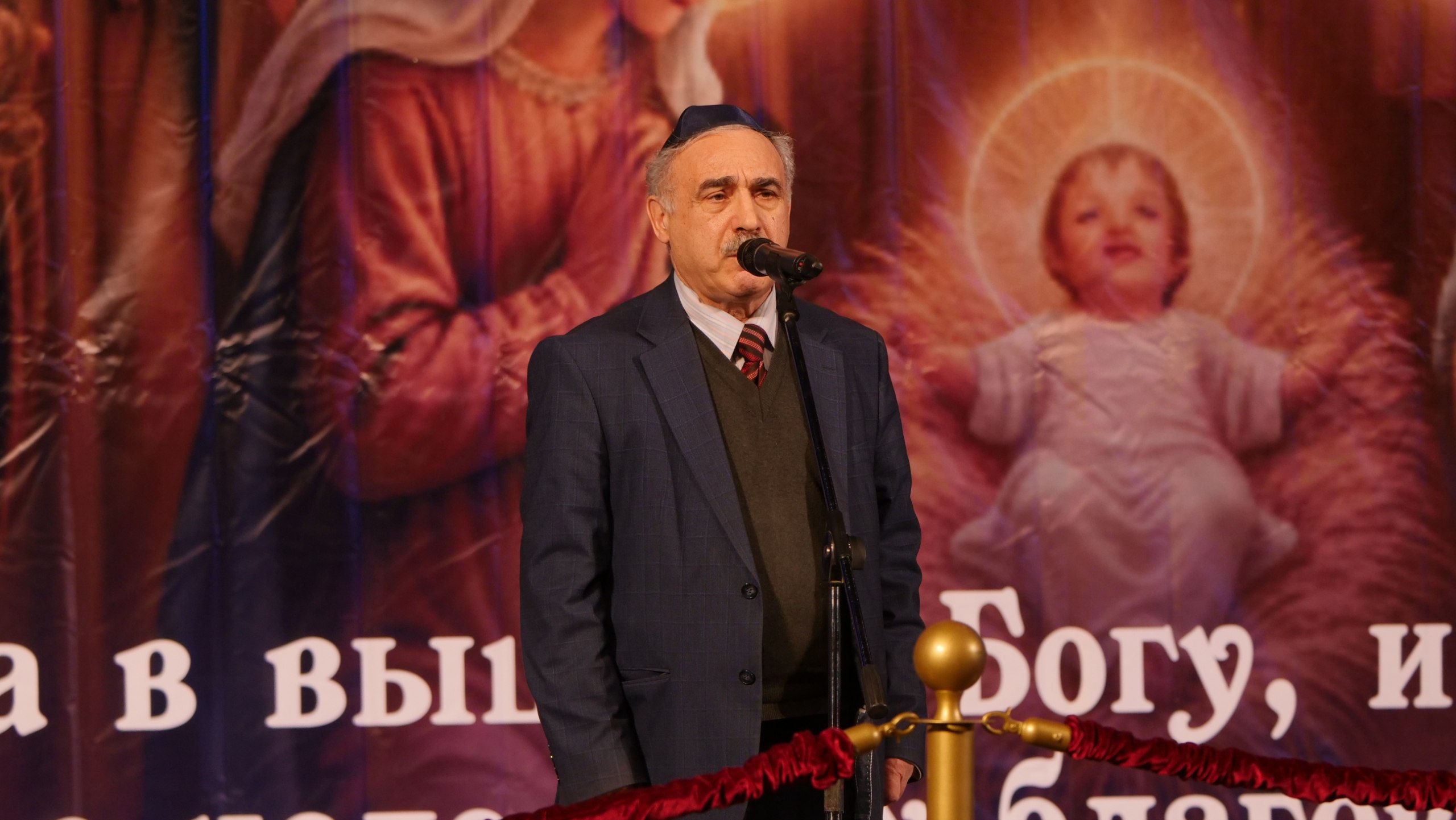 Открыли рождественский праздник врио министра по национальной политике и делам религий РД, Герой России Темирлан Абуталимов и архиепископ Махачкалинский и Дербентский Варлаам.