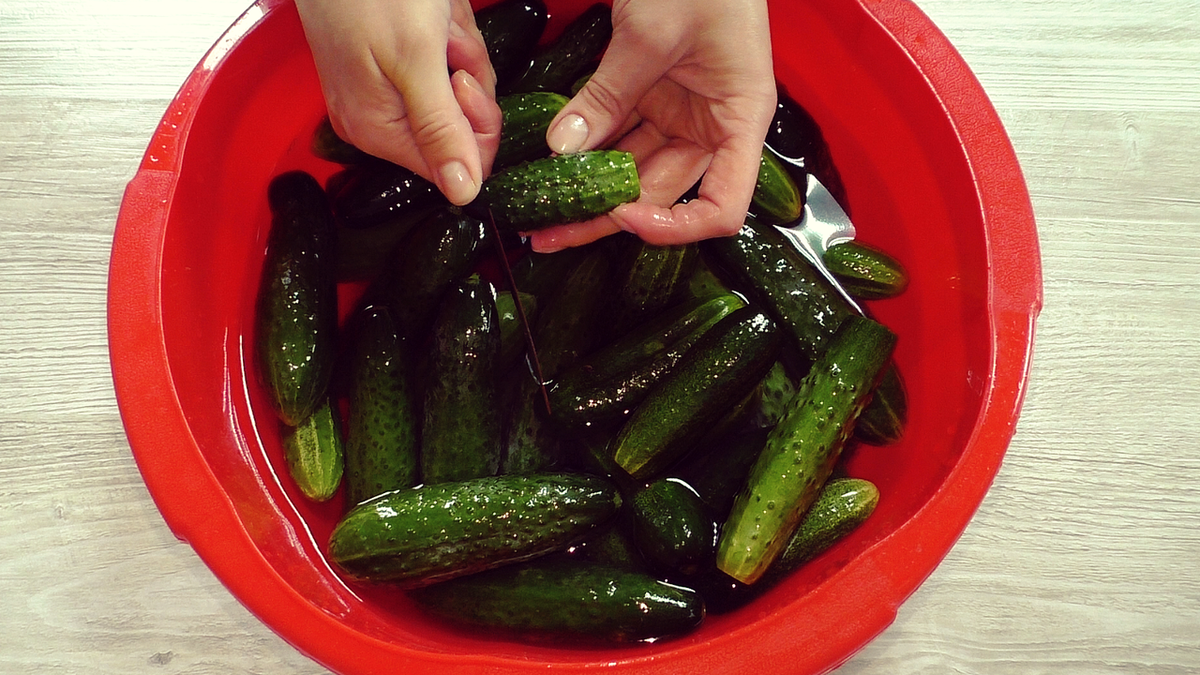 Для начала огурцы можно замочить в холодной воде на короткое время. Это поможет им впитать влагу и стать более хрустящими. После отмочки их стоит тщательно вымыть и, при желании, удалить "хвостики".