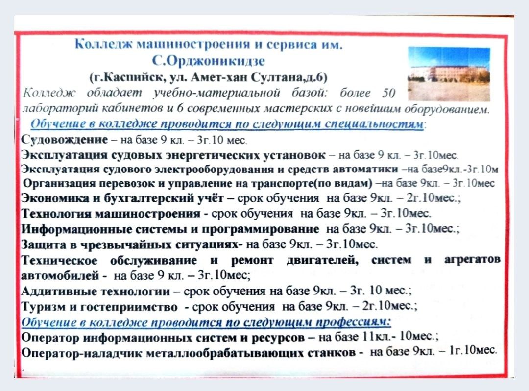 19 января в Каспийской морской школе-интернате состоялась профориентационная встреча кадетов 9-х классов с представителем колледжа машиностроения и сервиса имени С. Орджоникидзе Шарафудином Пашаевым.